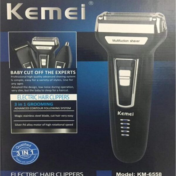ماكينة حلاقة 3 في 1 كيمي Kemei KM-6558 تعمل مع جاف للرجال – متعدد الاستخدام – شحن شعر وذقن وأنف.
