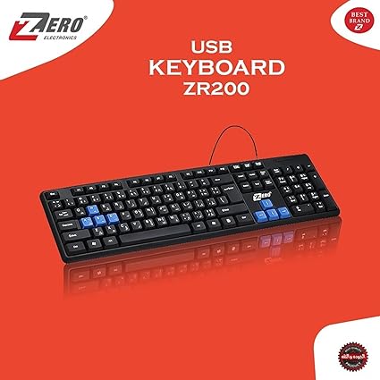 لوحة مفاتيح إلكترونية زد ار بالفضاء اللوني ار جي بي مع منفذ USB، تصميم أنيق مقاوم للانسكاب ومفاتيح صامتة ZR-200 من زيرو، أسود