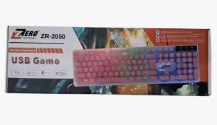 لوحة مفاتيح إلكترونية زيرو ZR-2050 بإضاءة بألوان ار جي بي مقاومة لانسكاب السوائل بمنفذ USB مع مفاتيح بصوت خافت لون وردي .