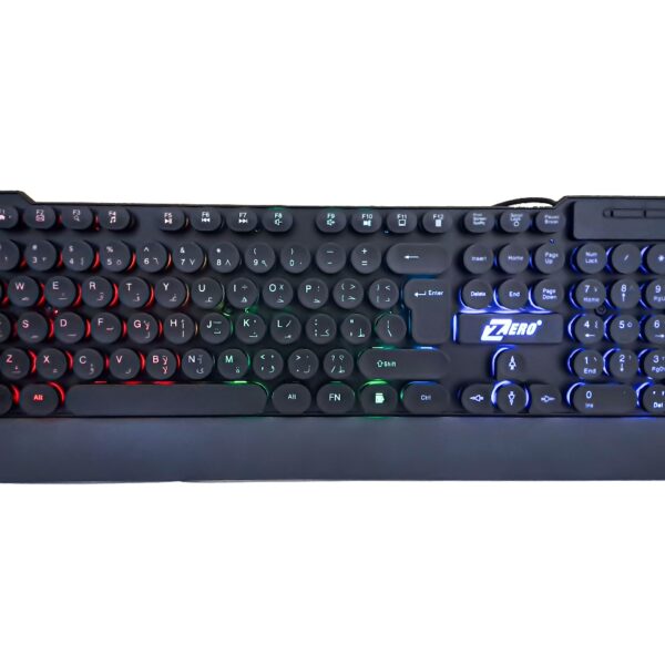 ZERO كيبورد زيرو ZR-2080 للأعمال والألعاب بإضاءة قوس قزح – تصميم معدني، مقاومة للسوائل، ومفاتيح صامتة.
