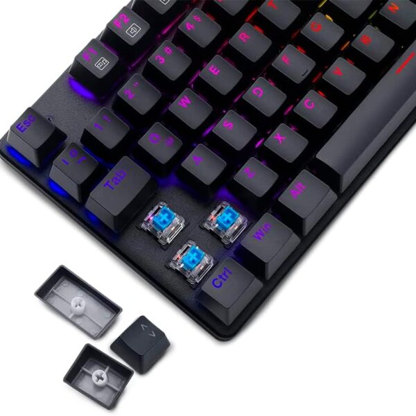 كيبورد ميكانيكي للألعاب بورا TGK313 بإضاءة ليد بألوان قوس قزح مفاتيح قابلة للتبديل السريع من تي-داجر سوداء USB