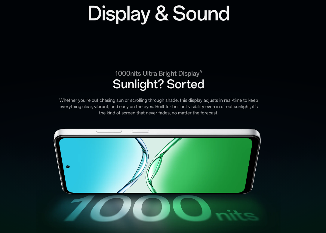 سواءً كنت تحت أشعة الشمس أو في الداخل، تتكيف الشاشة، مقدمةً وضوحًا ساطعًا ونابضًا بالحياة حتى في الإضاءة الشديدة. مع معدل تحديث يصل إلى 120 هرتز لعرض صور فائقة السلاسة وسطوع يضفي حيوية إضافية على أي مشاهدة متواصلة.