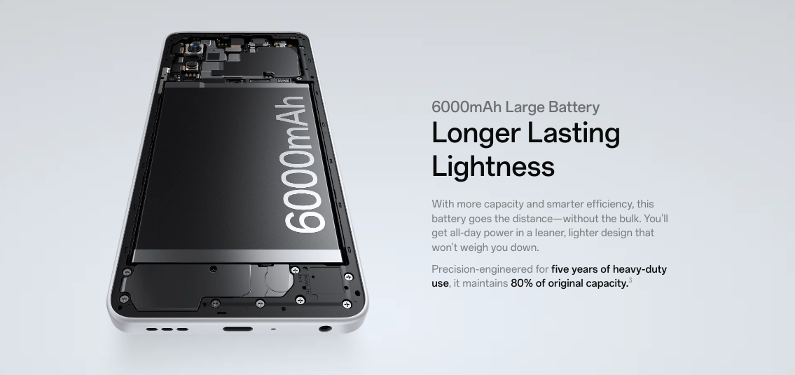 - بطارية قوية: سعة 6000 مللي أمبير للاستخدام الممتد.