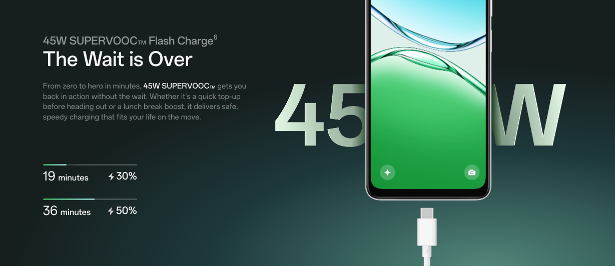 شحن سريع بتقنية SUPERVOOC ™ بقدرة 45 واط
