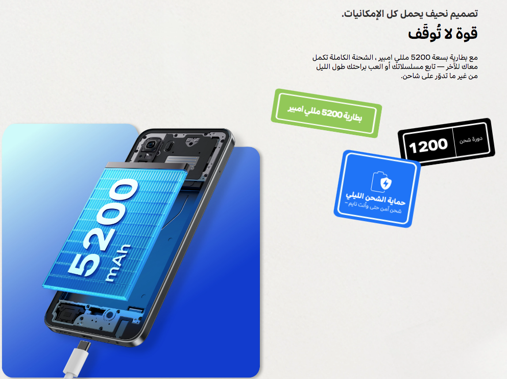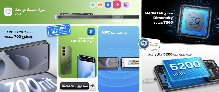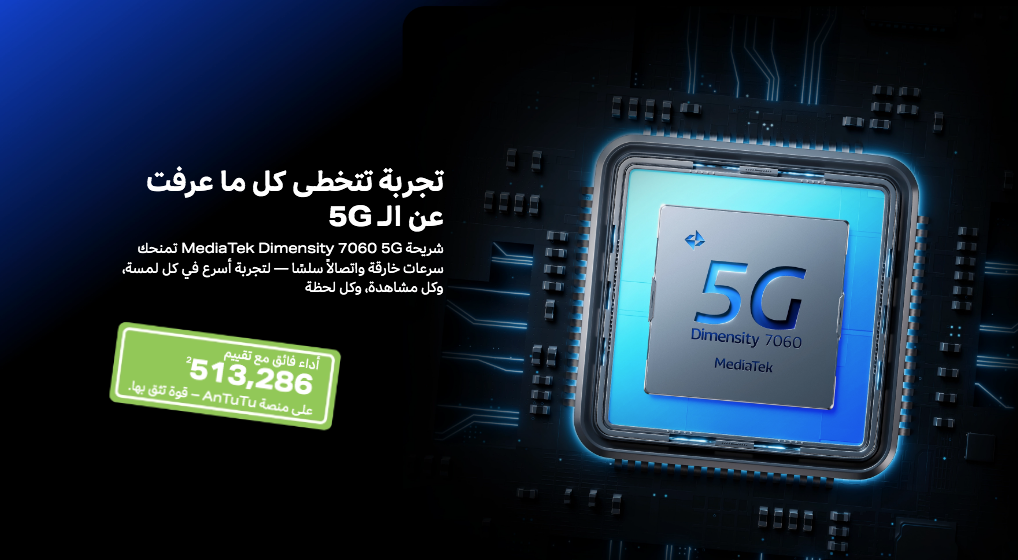 - المعالج: Mediatek Dimensity 7020 (بدقة تصنيع 6 نانومتر)