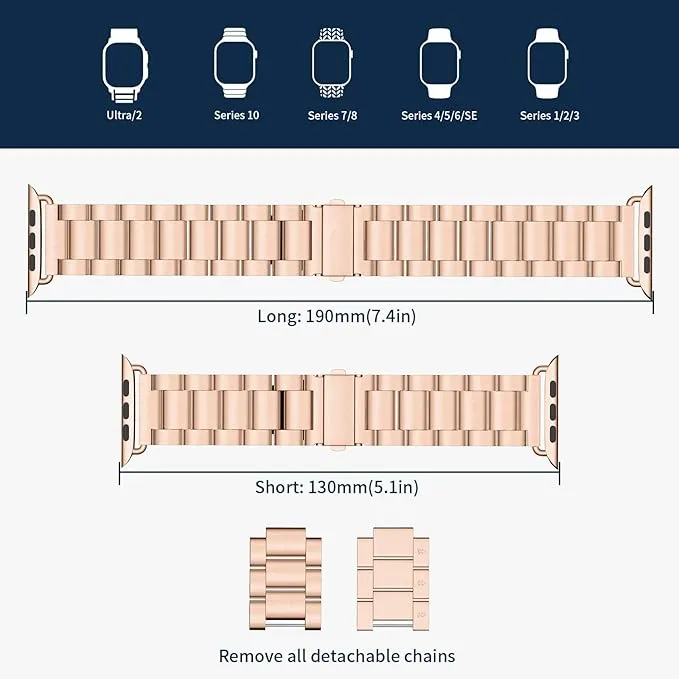 - تصميم بدون فجوة مع قطعة معدنية إضافية لجعل حزام الفولاذ المقاوم للصدأ يناسب ساعتك تمامًا.