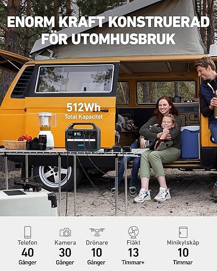 • سعة قوية: بسعة 512 واط في الساعة، قاعدة الشحن هي الحل الأمثل للشحن الذكي. قم بتشغيل المدفأة والثلاجة الصغيرة والمصباح والتلفزيون بسهولة أثناء التنقل.