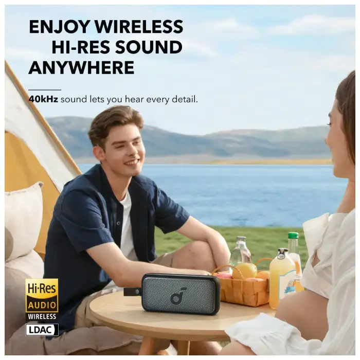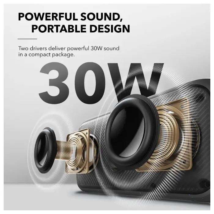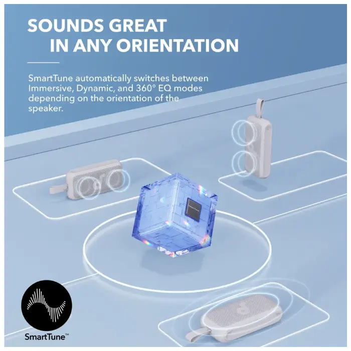 يمكن اقتران مكبّري صوت متطابقين من Soundcore للحصول على صوت ستيريو. يُشغّل كلا المكبّرين الصوت نفسه (إحداهما على القناة اليسرى والأخرى على القناة اليمنى).