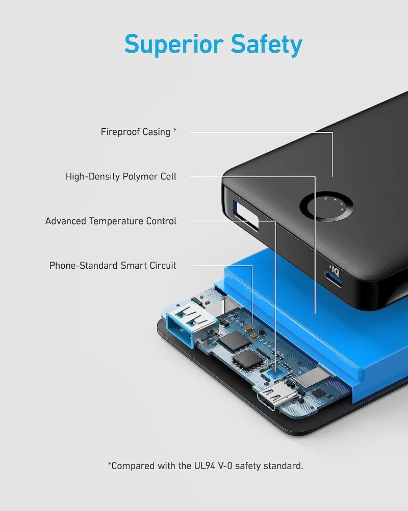 باور بانك أنكر 323 مع منفذ USB-C، شاحن 5000 مللي أمبير في الساعة (PowerCore BIQ)، حزمة بطارية عالية السعة لهاتف iPhone 14/14 Pro/15 Pro Max/Samsung/Pixel/LG (الكابل والشاحن غير متضمنين)