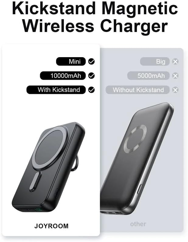 - 【الشحن في أي وقت】يوفر شاحن بطارية جوي روم المغناطيسي 10000 مللي أمبير في الساعة خيارات شحن متعددة مع شحن لاسلكي 5 واط/7.5 واط/10 واط/15 واط ومخرج USB نوع سي 20 واط ومدخل بي دي 18 واط. قادر على شحن ما يصل إلى ثلاثة أجهزة في وقت واحد، واستمتع بحل شحن آمن وفعال وموثوق لجميع احتياجاتك من الطاقة..