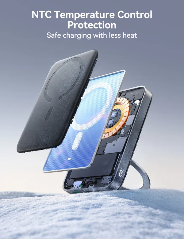 Joyroom JR-PBM12 المغناطيسي اللاسلكي، ليس مجرد شاحن متنقل، بل هو رفيقك الأمثل للطاقة، مصمم خصيصاً ليواكب أسلوب حياتك السريع ويمنحك حرية لا مثيل لها. قل وداعاً للقلق من نفاذ البطارية واستمتع بقوة تدوم طوال اليوم.