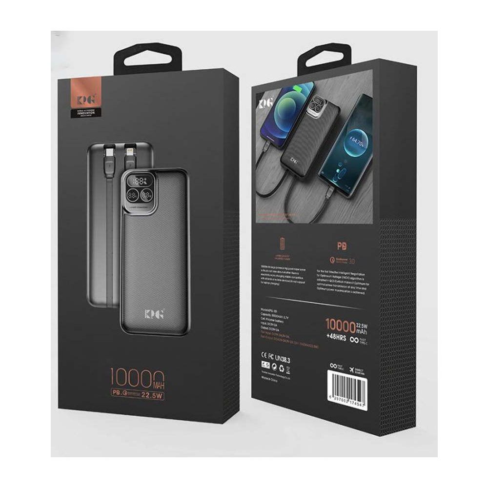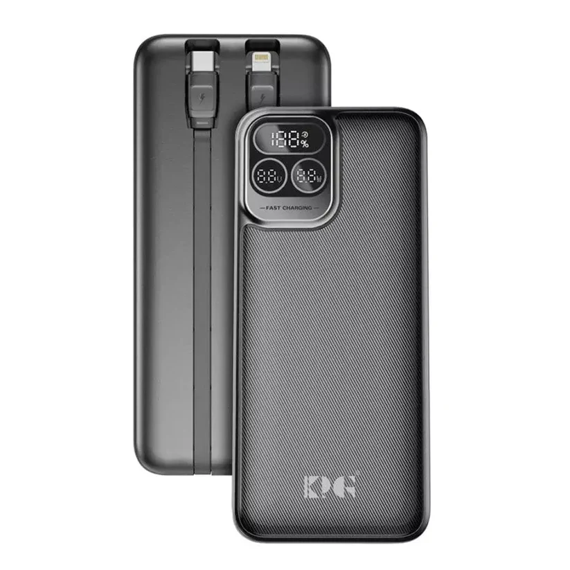 يوفر بنك الطاقة KPG بسعة 10000 مللي أمبير/ساعة طاقة محمولة تصل إلى 10,000 مللي أمبير/ساعة، مما يشحن هاتفك أو جهازك اللوحي أو أي جهاز آخر بسهولة. يتميز بوصلات متعددة تُمكّنك من اختيار الكابل المناسب لجهازك. تصميمه المتين يوفر الأمان والحماية من التيار الزائد، ولوحة LED سهلة الاستخدام تُبقيك على اطلاع دائم بمستويات البطارية.