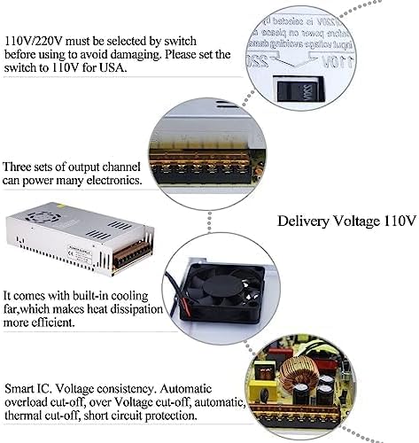 • 1. تحويل فعال من تيار متردد إلى تيار مستمر: تحويل تيار متردد 110 فولت/220 فولت إلى تيار مستمر 12 فولت 30 أمبير 360 واط – جهد خرج قابل للتعديل – تبديد الحرارة المحسن في علبة معدنية متينة