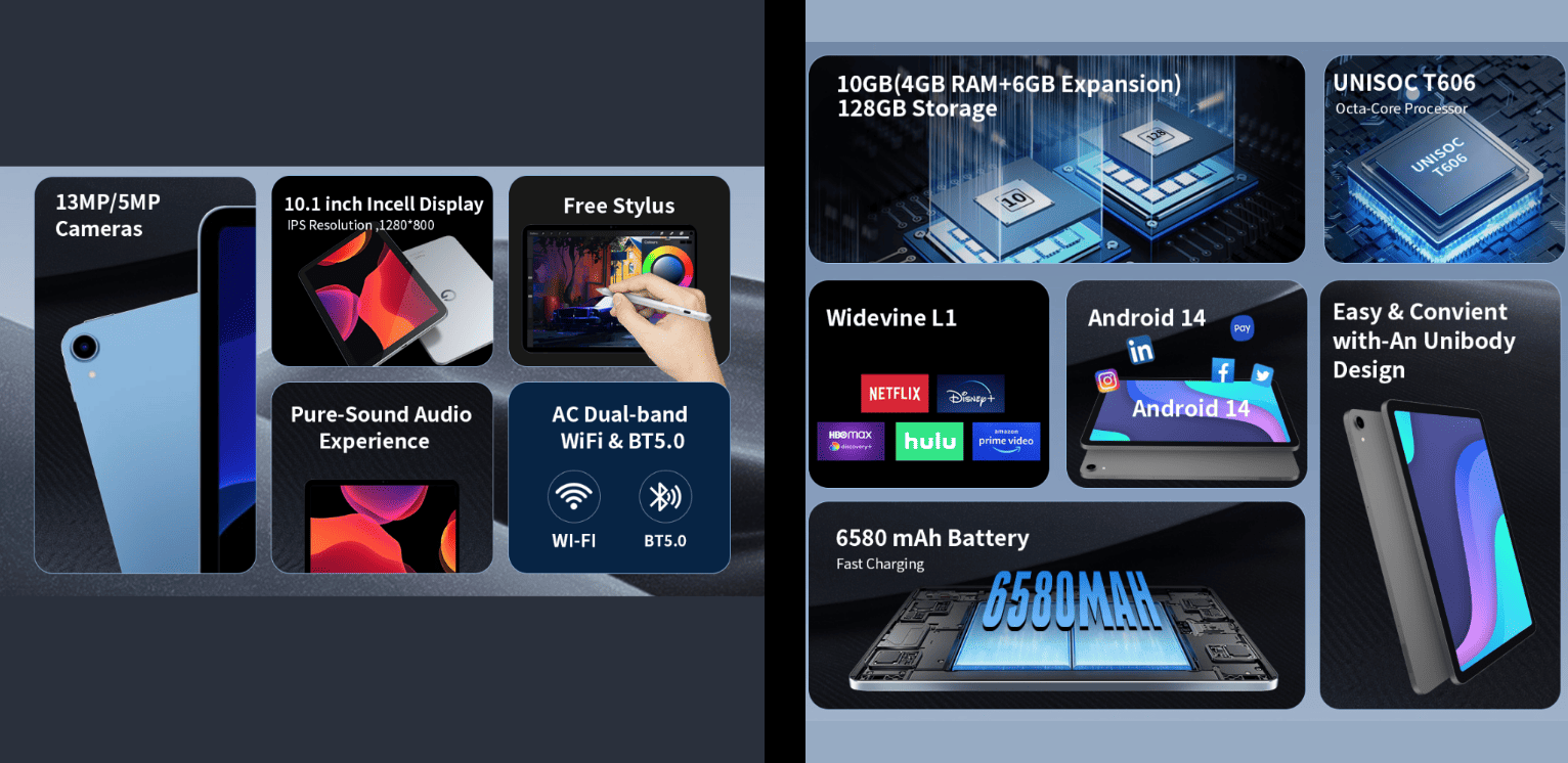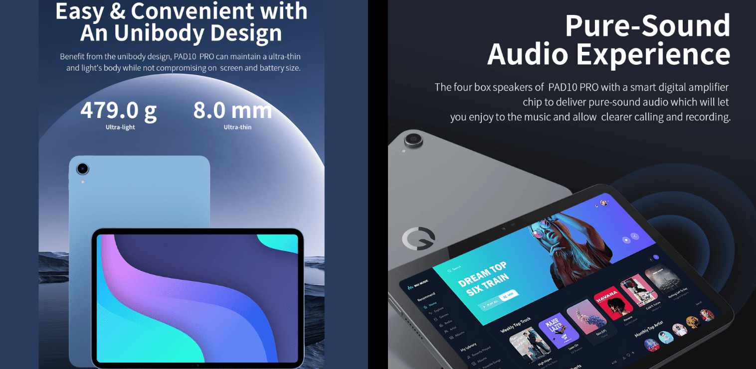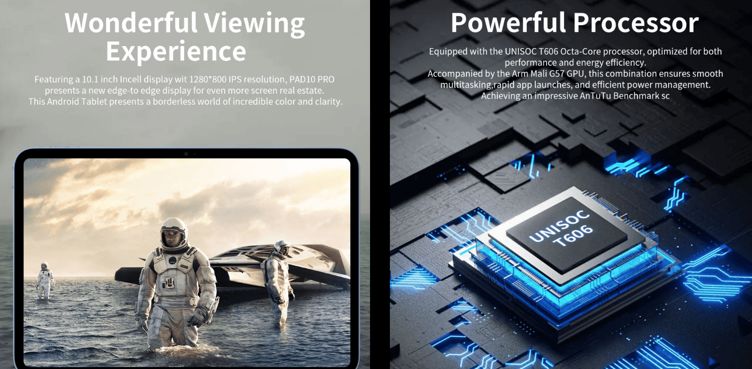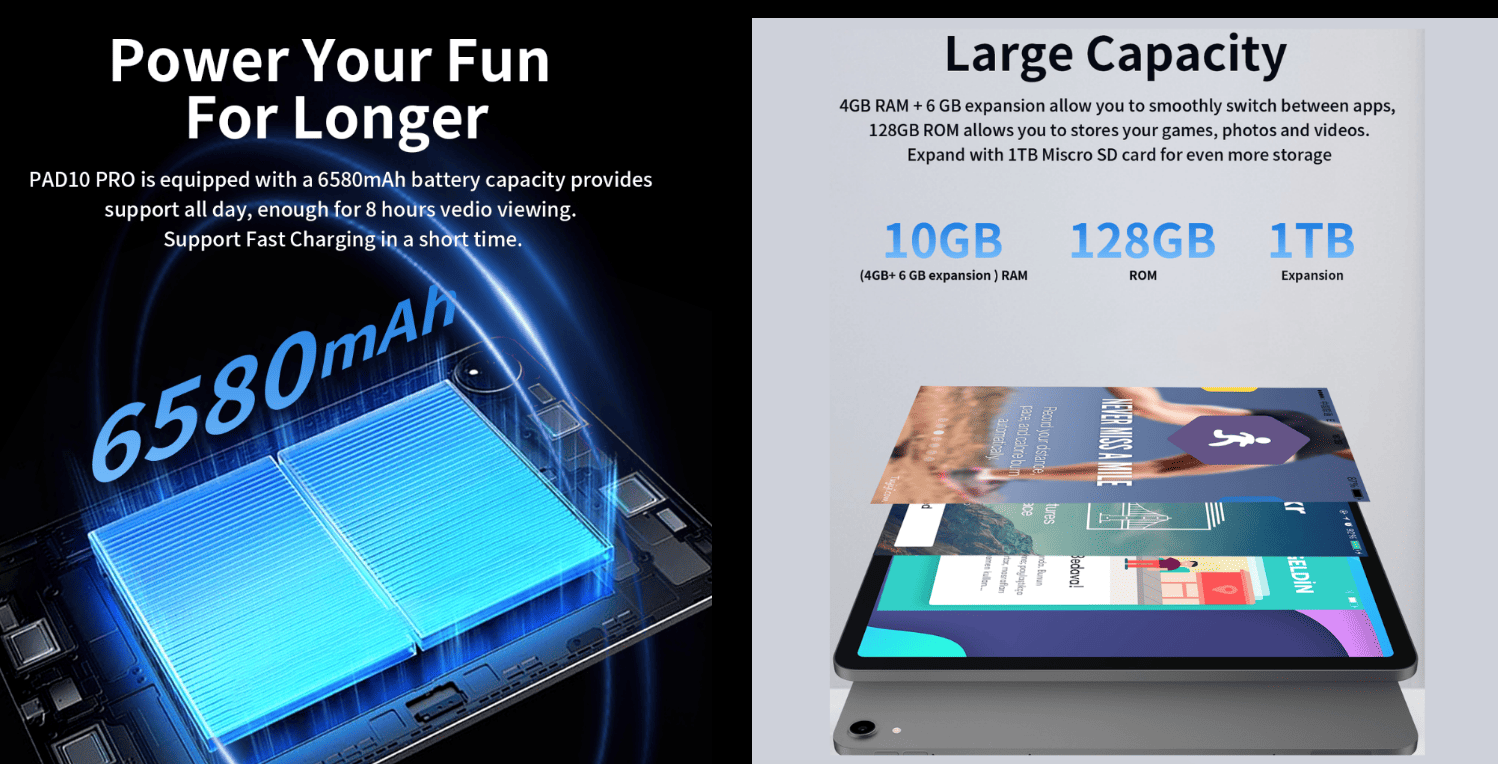 الأداء والمساحة والرام لتابلت G-TAB Pad10 Pro