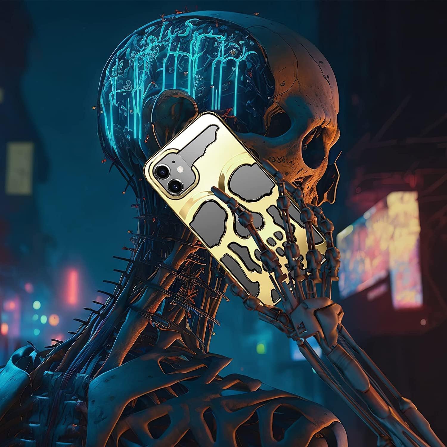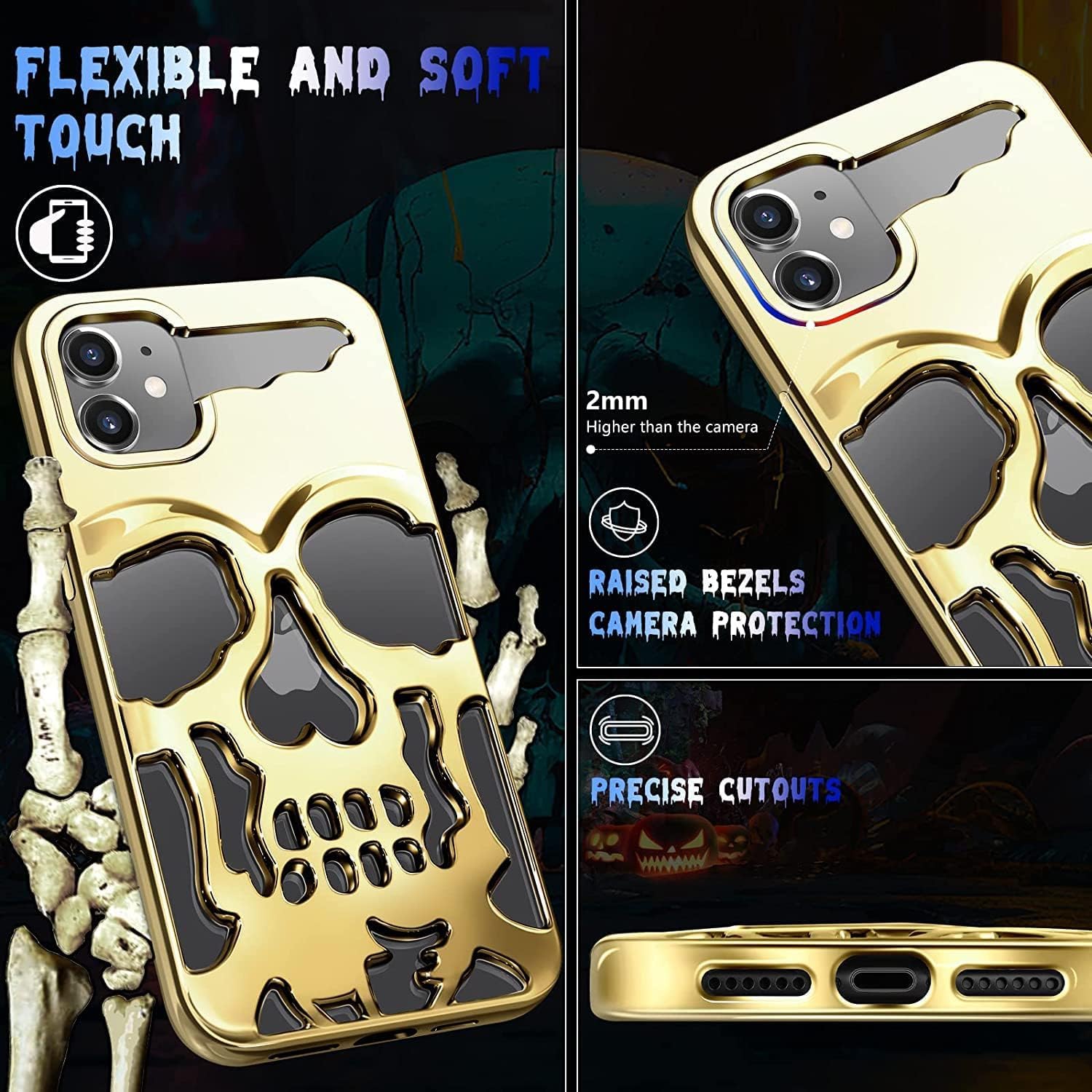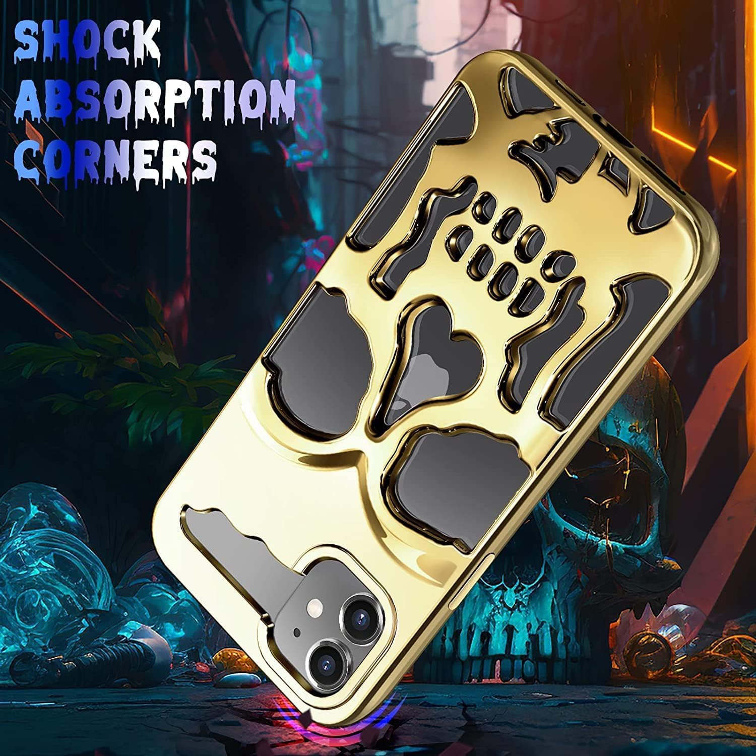 - [تصميم جمجمة فريد] : يتميز الجراب بتصميم جمجمة مميز يجمع بين الجرأة والأناقة، مما يجعله خيارًا مثاليًا لمن يسعون للتعبير عن أسلوبهم الفريد. تضفي الألوان الزاهية وطبقة الطباعة بالليزر لمسة فنية ساحرة، مما يجعل كل نظرة إليه تبرز جمالية فريدة تشد انتباه الجميع.
