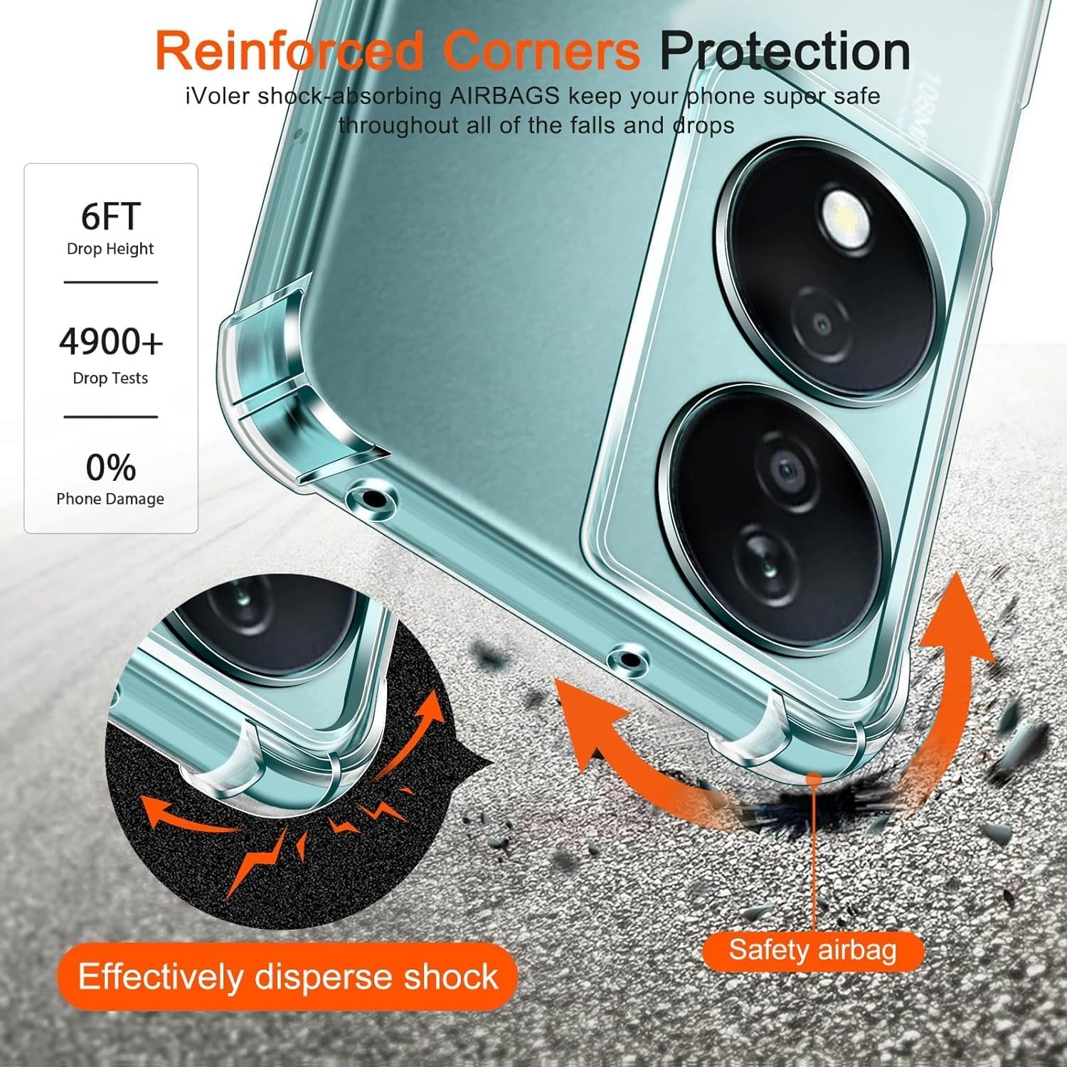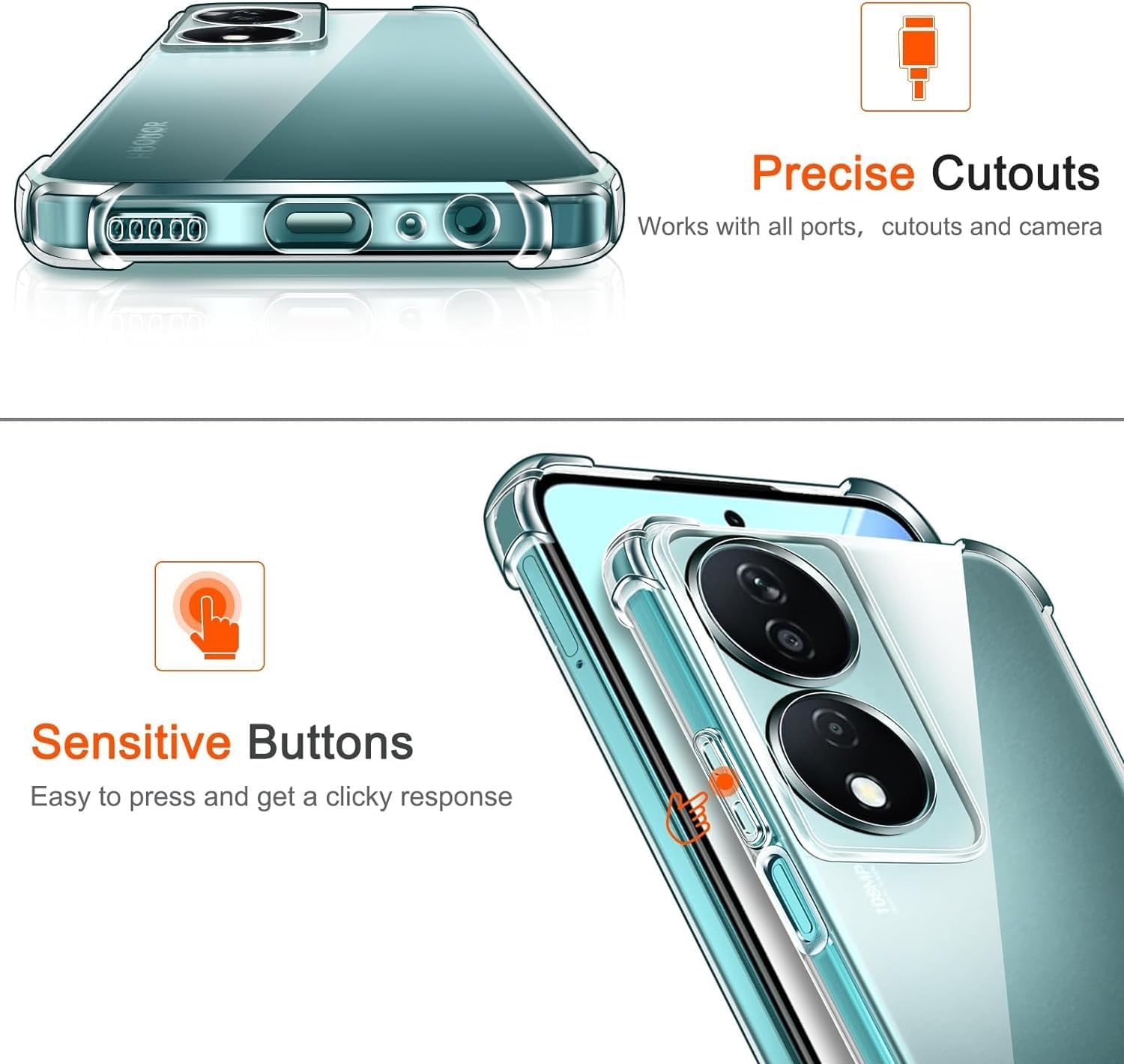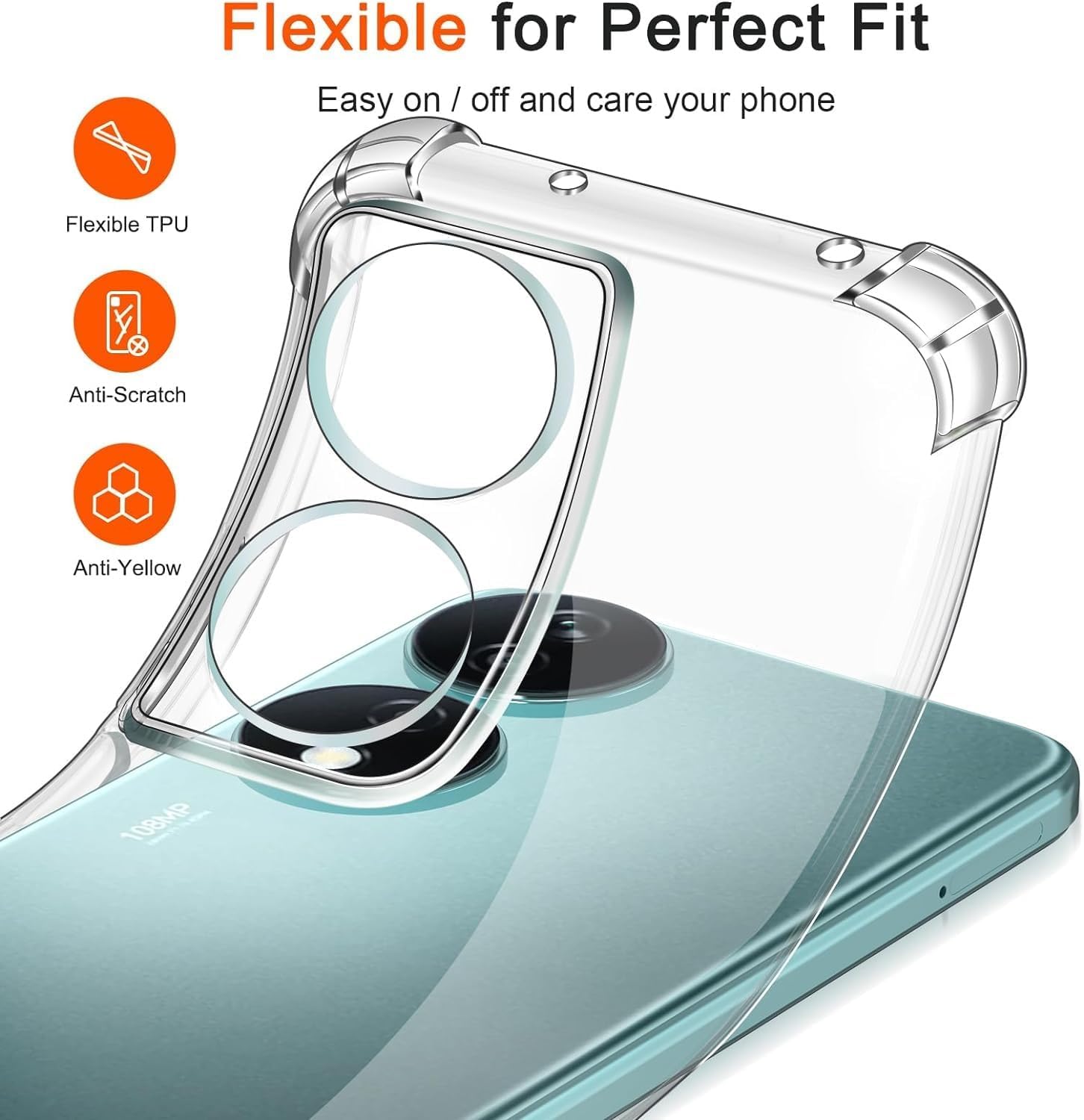 زوايا معززة لامتصاص الصدمات والتلف ومقاومة الأوساخ. شفافية واضحة للغاية تبرز تصميم الهاتف الأصلي. تصميم نحيف وسهل الحمل في الجيب. سهولة الوصول إلى جميع عناصر التحكم والأزرار. متوافق مع الشحن اللاسلكي.