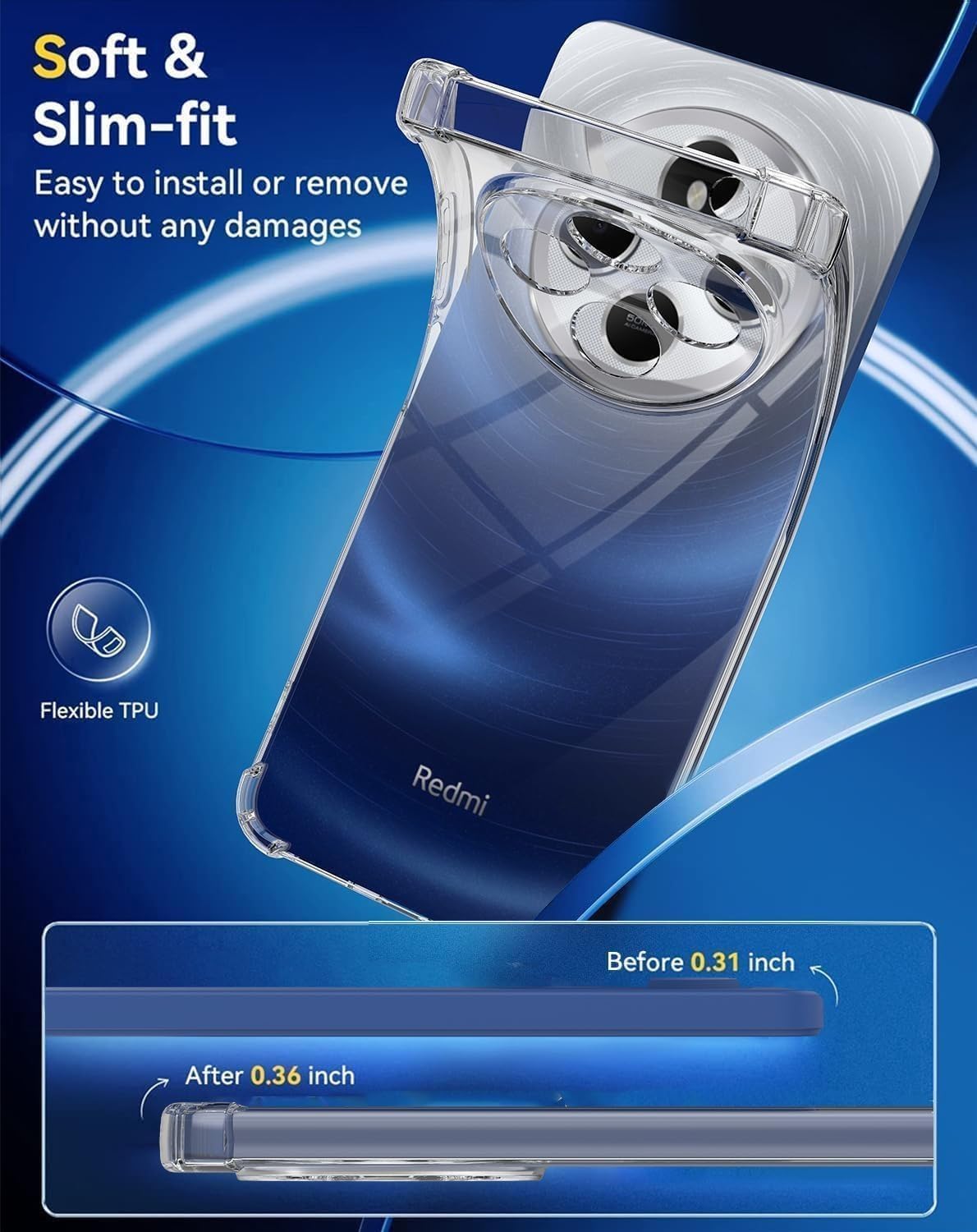 - خفيف الوزن ورفيع: لا يضيف حجمًا زائدًا للهاتف، مما يحافظ على مظهره الأنيق.