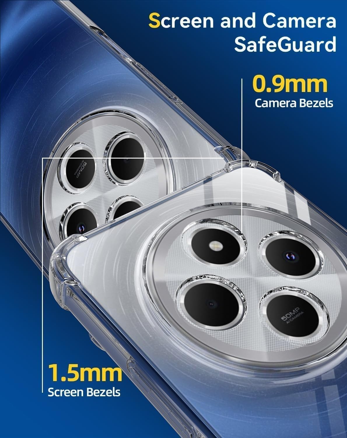 - حماية للشاشة والكاميرا: إطارات مرتفعة حول الشاشة والكاميرا تمنع تعرضها للخدوش عند وضع الهاتف على الأسطح.