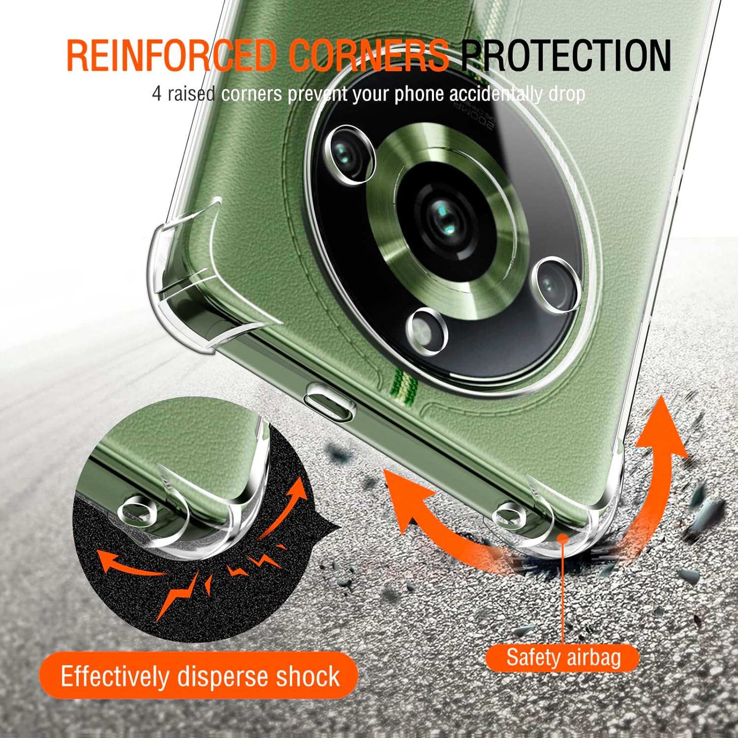 - حماية للشاشة والكاميرا: إطارات مرتفعة حول الشاشة والكاميرا تمنع تعرضها للخدوش عند وضع الهاتف على الأسطح.