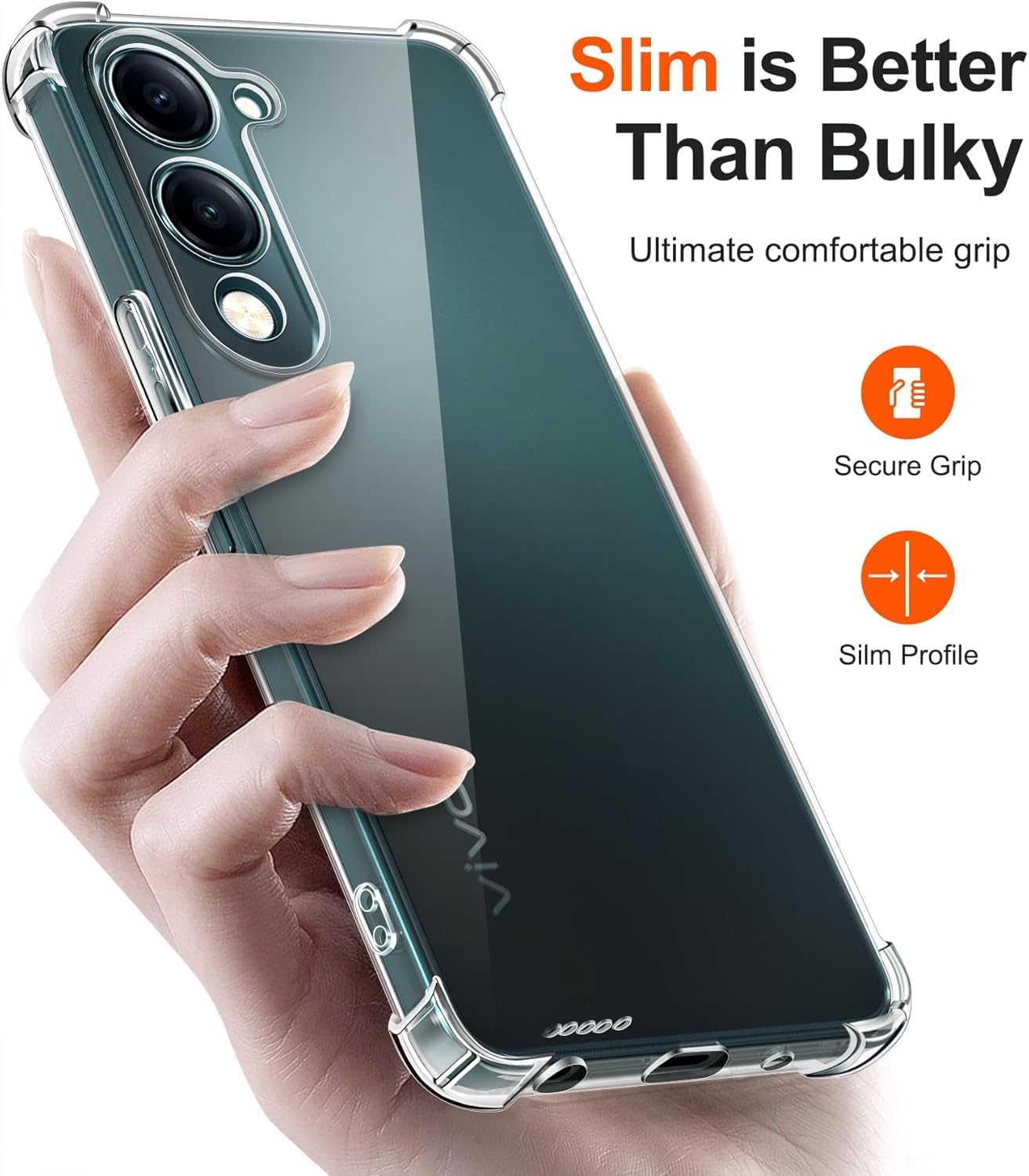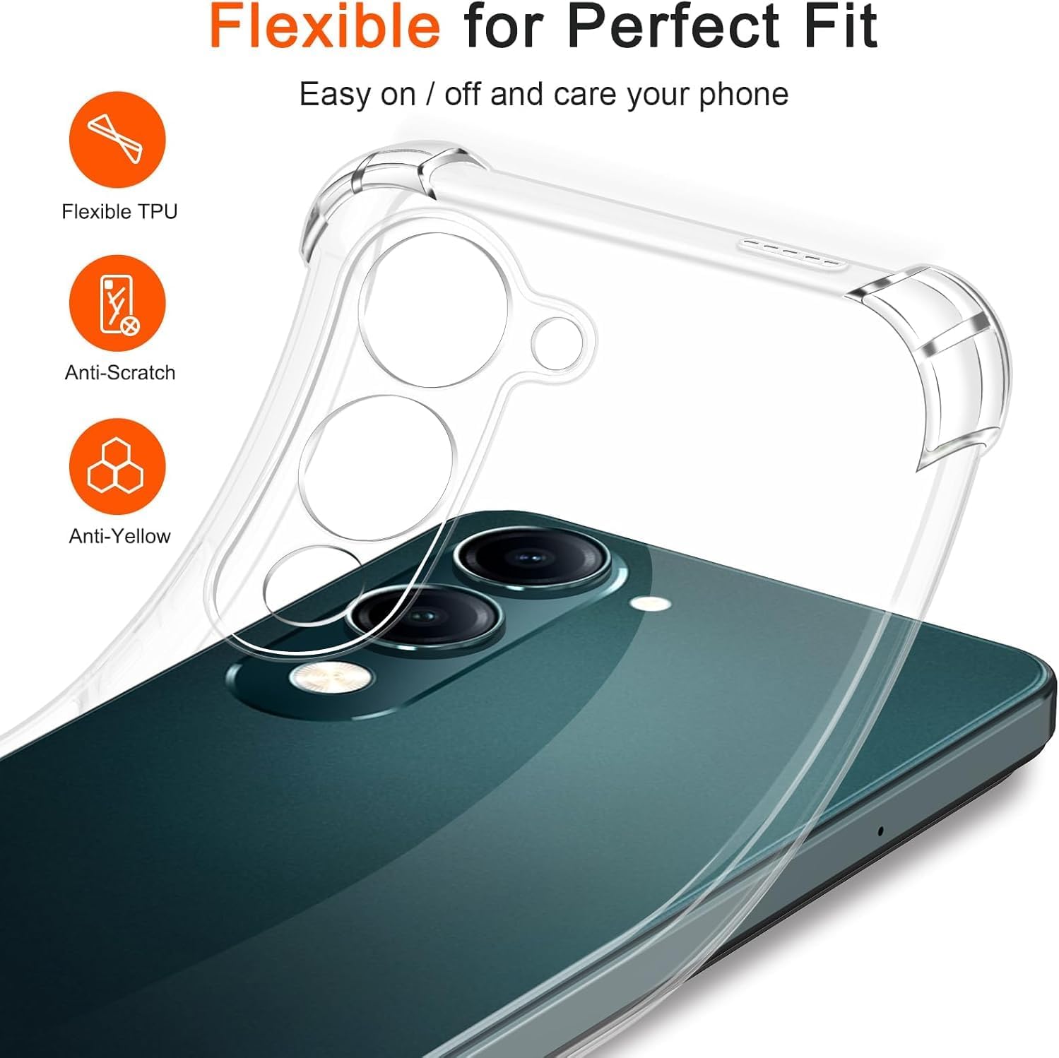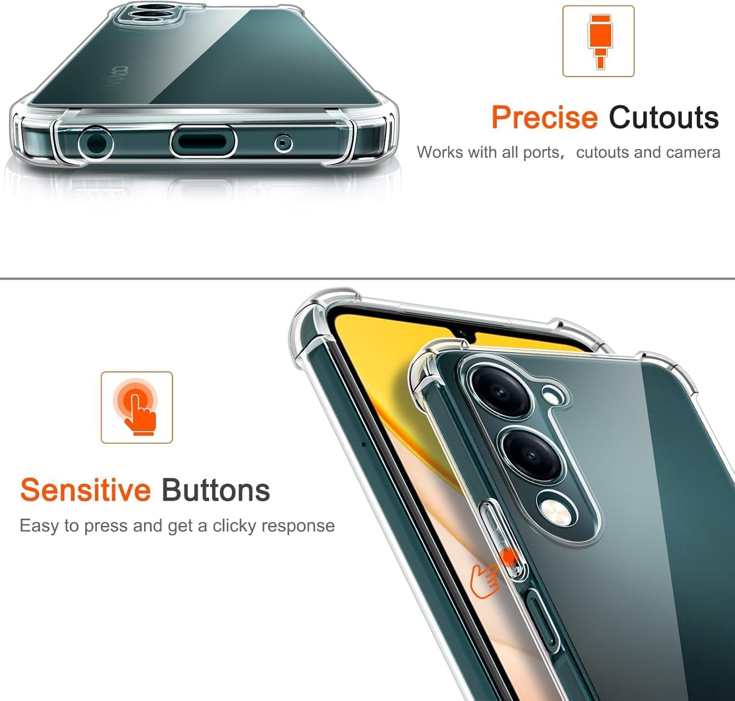 زوايا معززة لامتصاص الصدمات والتلف ومقاومة الأوساخ. شفافية واضحة للغاية تبرز تصميم الهاتف الأصلي. تصميم نحيف وسهل الحمل في الجيب. سهولة الوصول إلى جميع عناصر التحكم والأزرار. متوافق مع الشحن اللاسلكي.