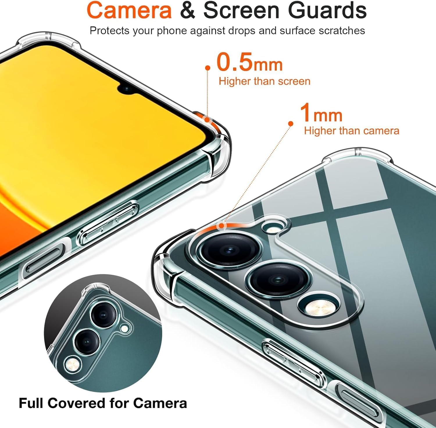 - حماية للشاشة والكاميرا: إطارات مرتفعة حول الشاشة والكاميرا تمنع تعرضها للخدوش عند وضع الهاتف على الأسطح.