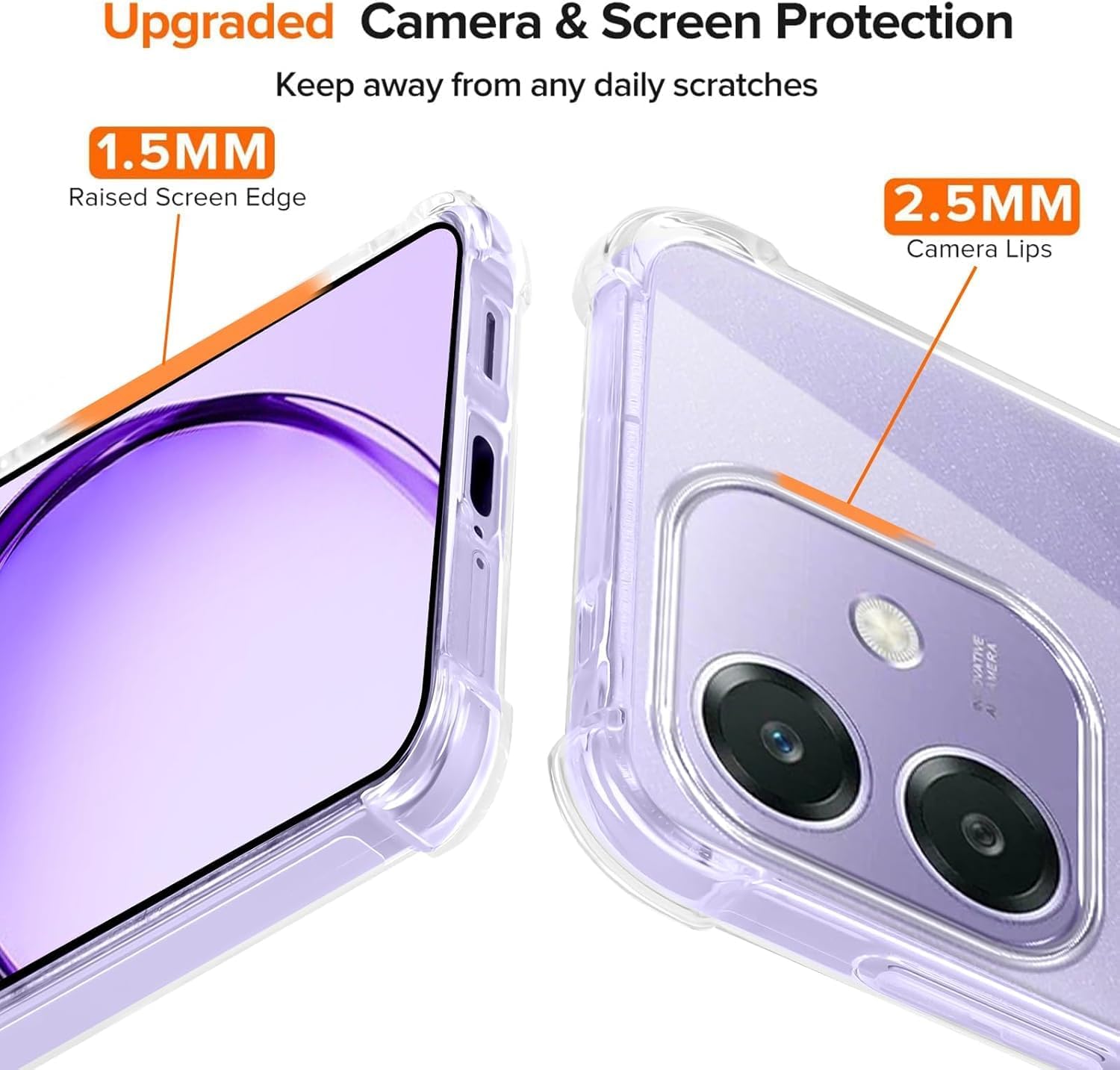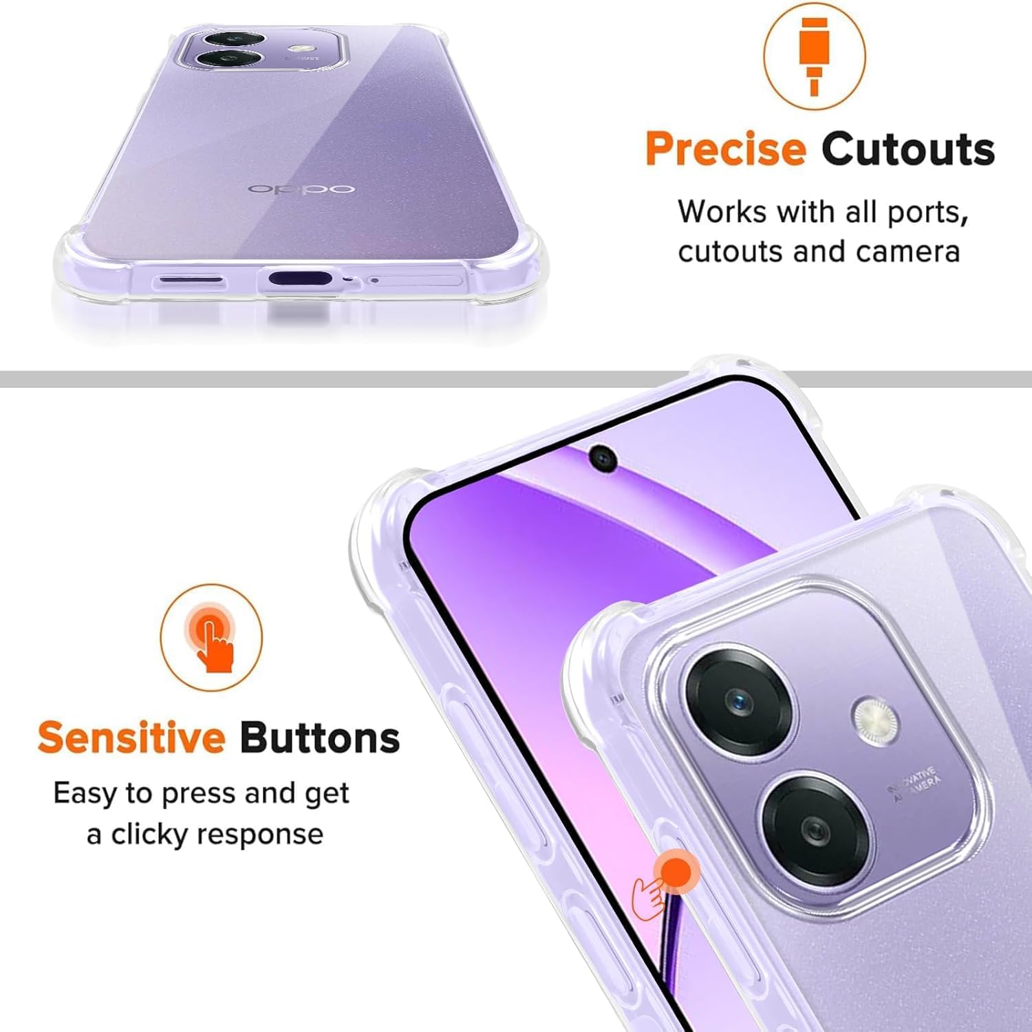 جراب حماية غوريلا شفاف لموبايل Oppo A3 بزوايا مضادة للصدمات.