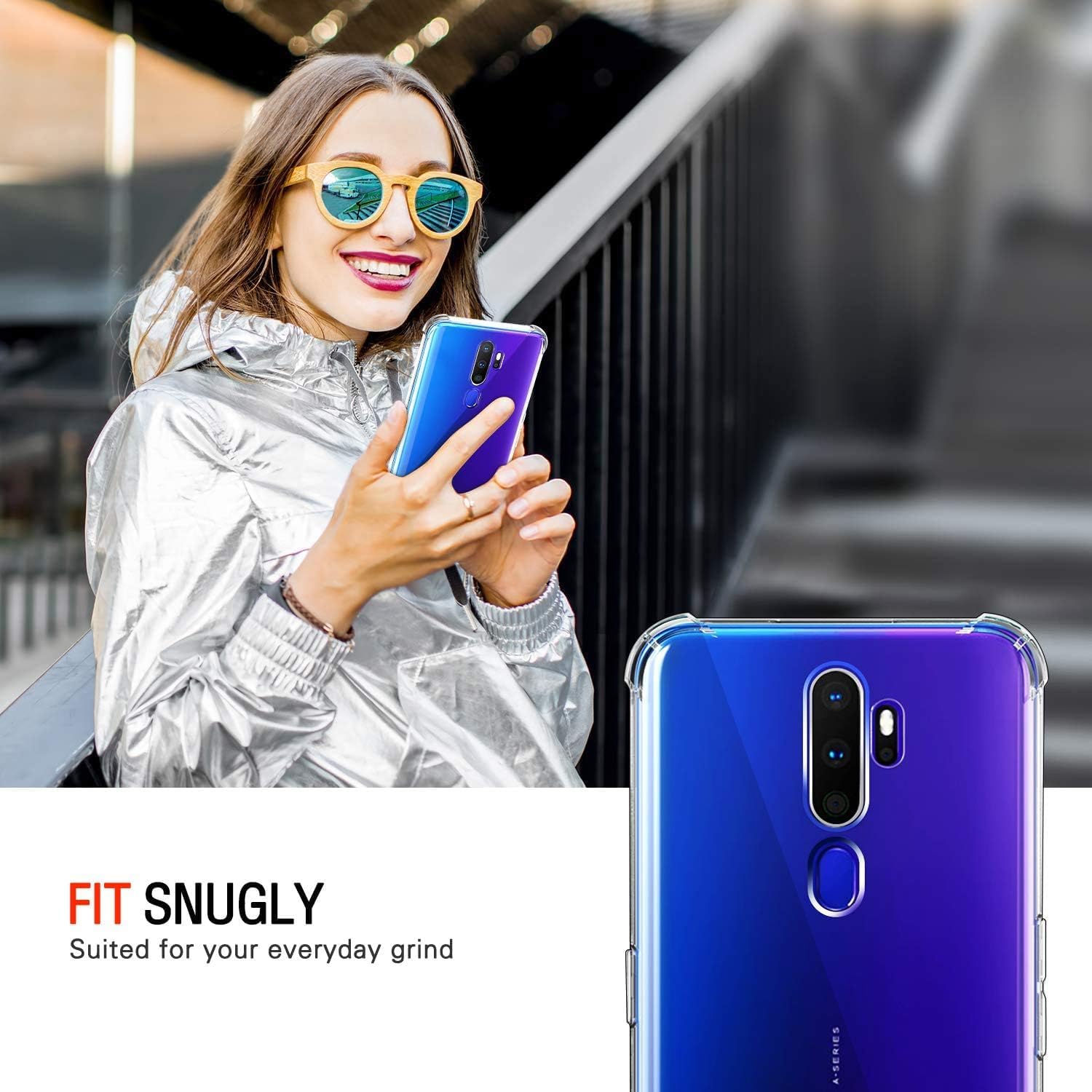جراب حماية غوريلا شفاف لموبايل Oppo A5 2020 بزوايا مضادة للصدمات.