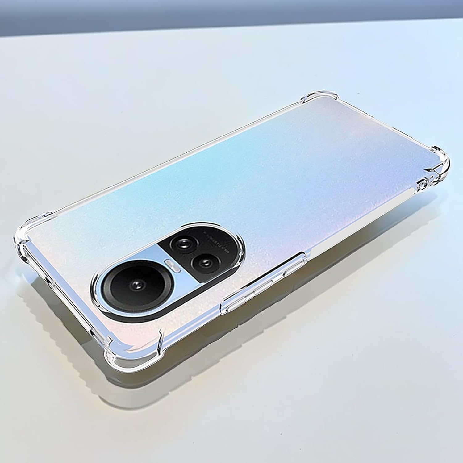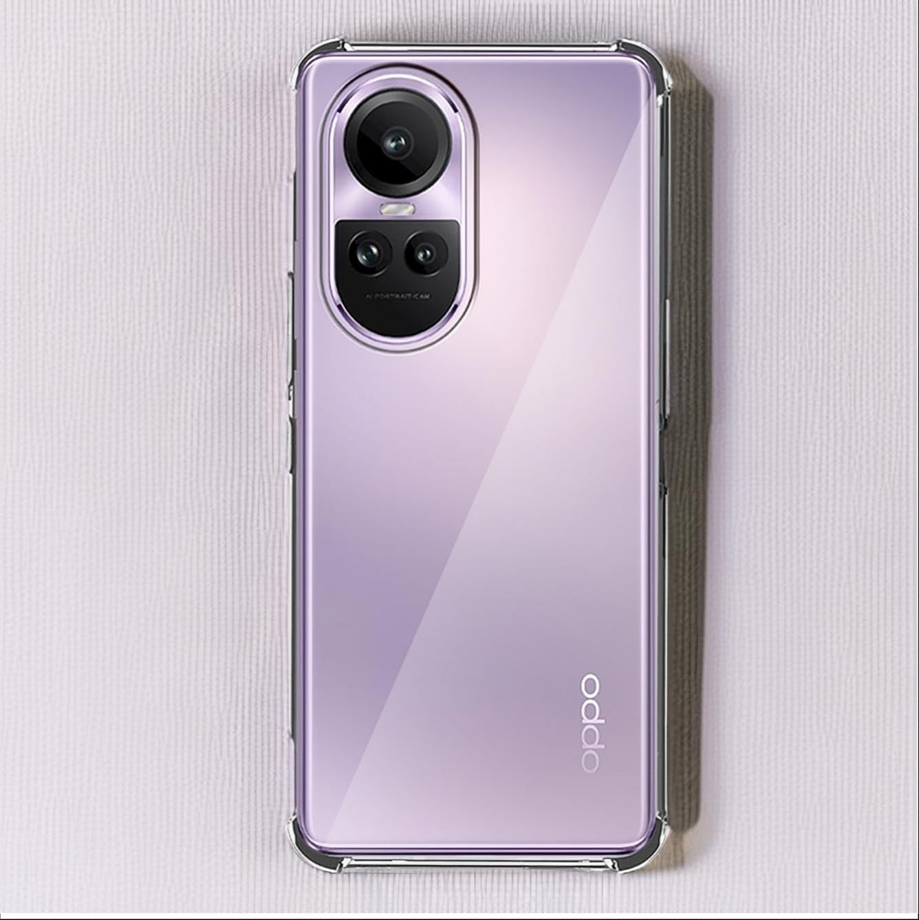 جراب حماية غوريلا شفاف ناعم من البولي يوريثين الحراري والسيليكون ممتص للصدمات بزاوية معززة وحماية كاملة للكاميرا لموبايل Oppo Reno 10 5G.