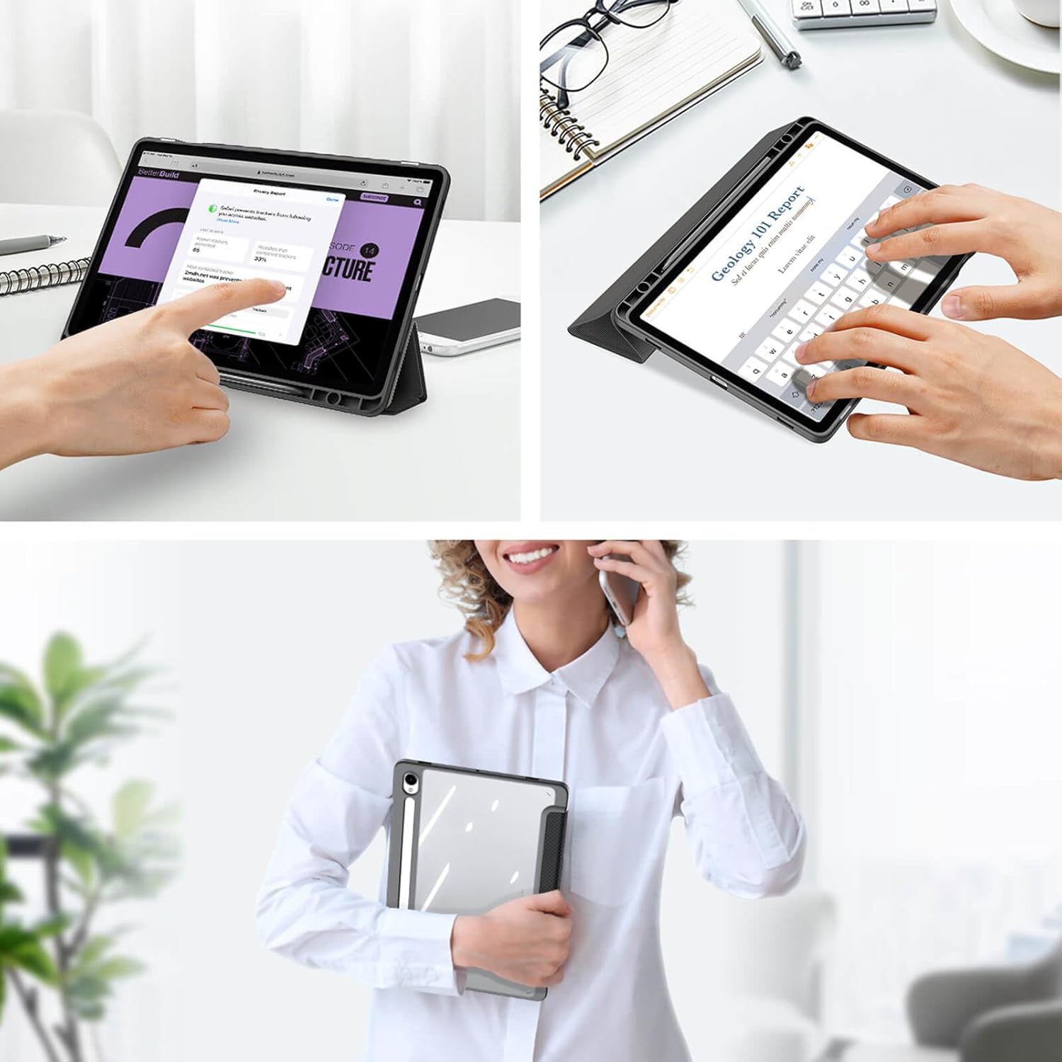 - مصنوع من جلد صناعي عالي الجودة مع غطاء خلفي شفاف من مادة البولي كربونات.