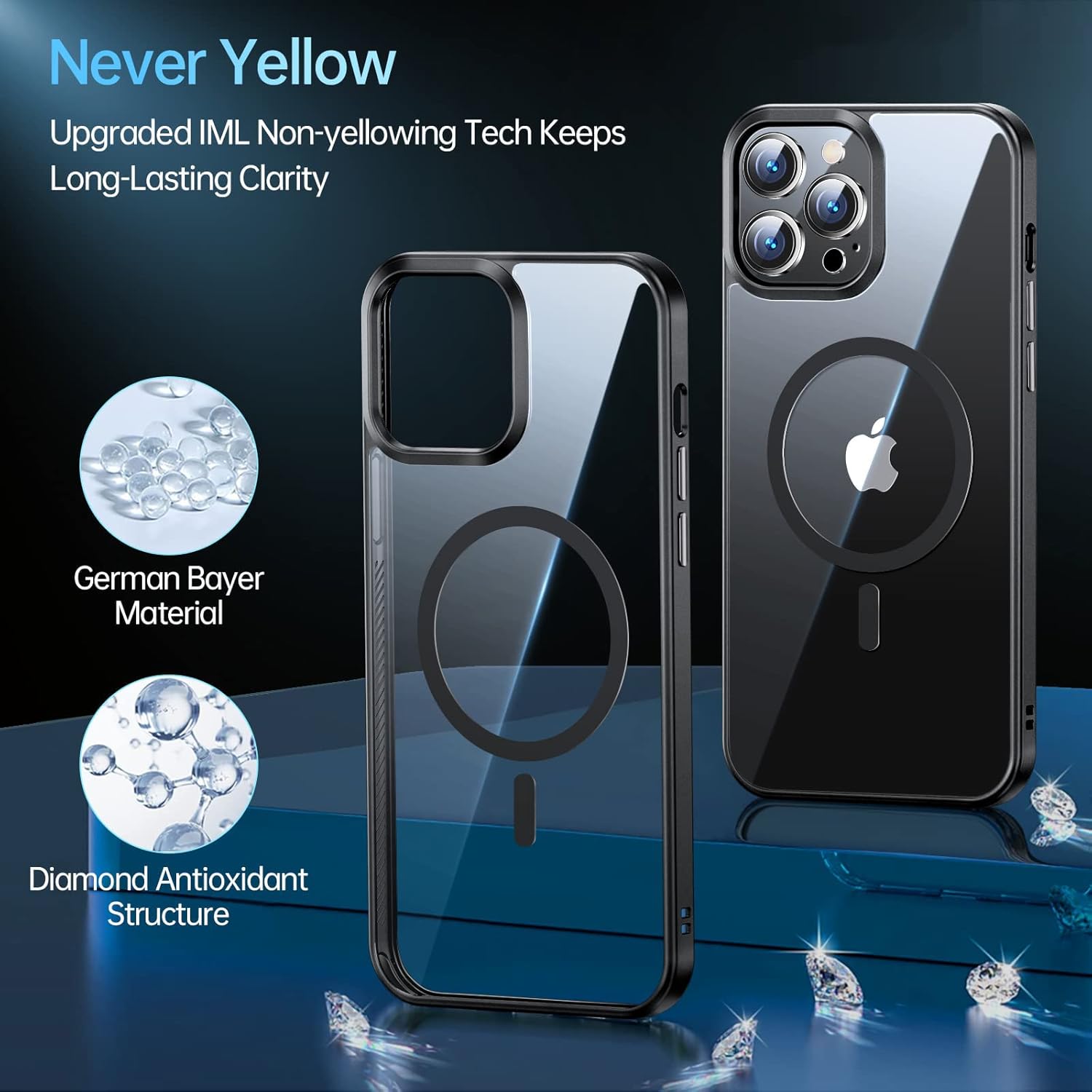 - 💎【شفافية فائقة تدوم طويلاً】يأتي جراب موبايل آيفون 15 برو ماكس الشفاف مصنوعًا من البولي كربونات الشفاف غير القابل للاصفرار مع ممتص للصدمات من السيليكون الناعم. يعزز هذا الجراب من مظهر الموبايل ويحمي المظهر والتصميم الأصلي لموبايل ايفون الجديد بنسبة 100%. نظرًا لأن هذا الجراب يأتي بلمسة نهائية تتميز بطلاء كهربائي مضاد لبصمات الأصابع وطلاء نانو مضاد للأكسدة، فإنه يمكنه حماية الموبايل بنسبة 99.9% من الأشعة فوق البنفسجية وكذلك البقع وبصمات الأصابع. كما يوفر الجزء الخلفي الصلب المصنوع من البولي كربونات تعزيزًا بنسبة 30% من حيث مقاومة الصدمات مقارنة بالجزء الخلفي الشفاف الناعم للجرابات الأخرى.