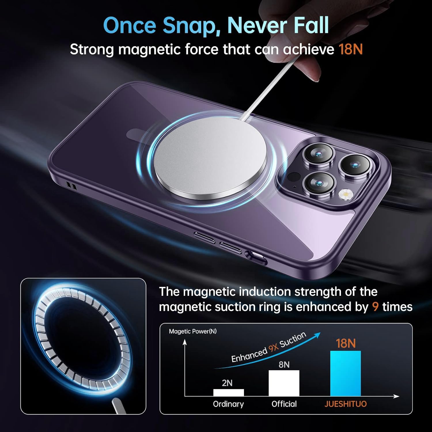 - [امتصاص مغناطيسي قوي] 38 مغناطيسًا مدمجًا بمحاذاة مثالية تجعل الشحن اللاسلكي أسرع وأسهل من أي وقت مضى. متوافق مع ملحقات ماج سيف. عندما يحين وقت الشحن، ما عليك سوى الاحتفاظ بالجراب على هاتفك واضغط على الشاحن الخاص بك