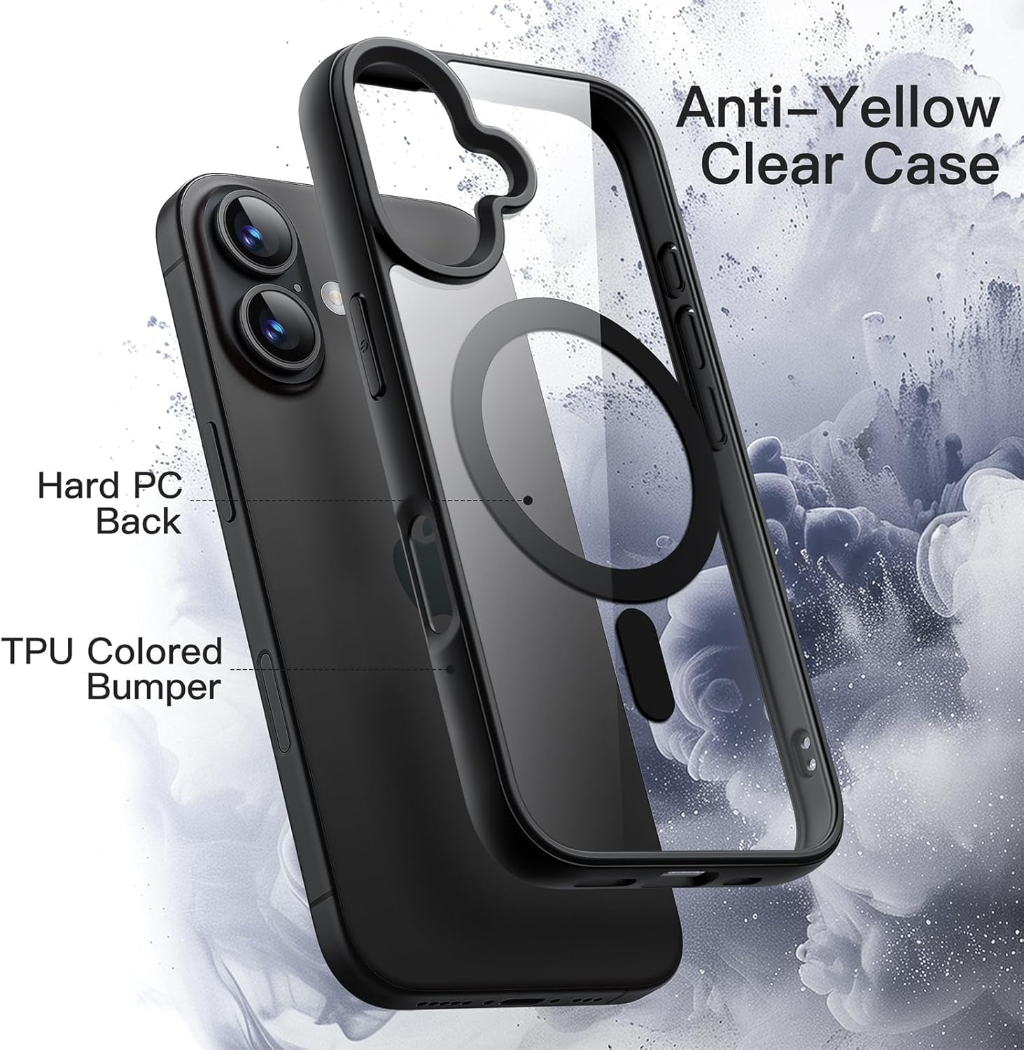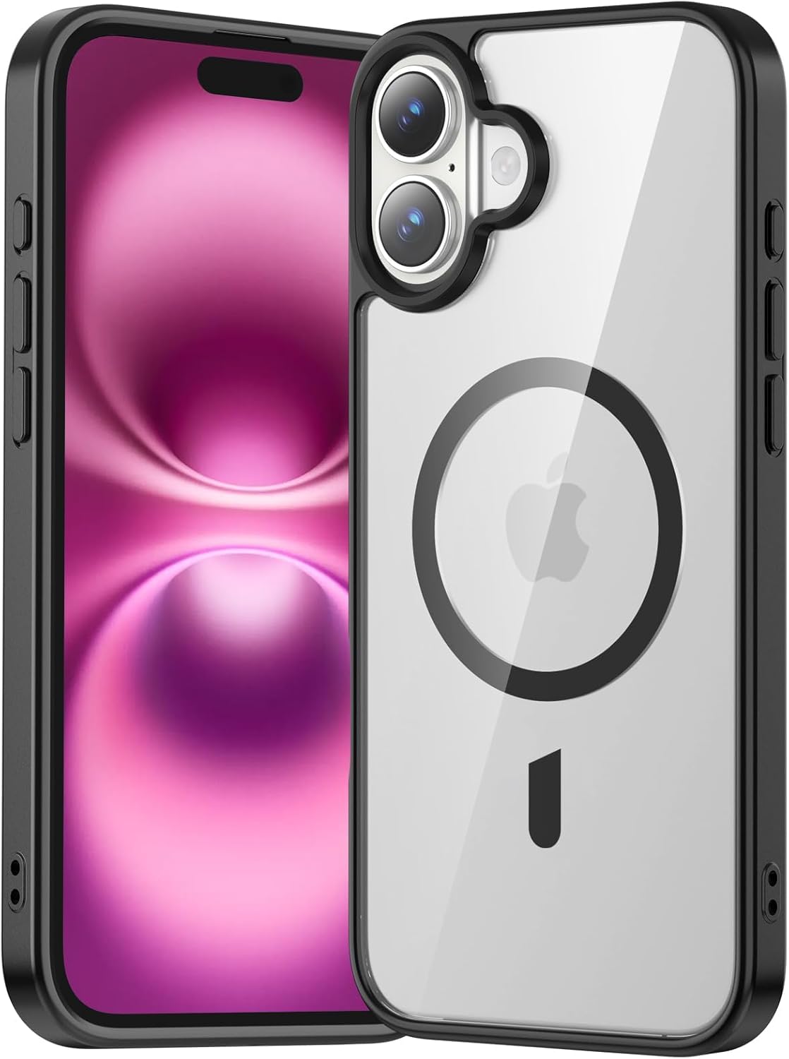 جراب مغناطيسي لموبايل ايفون 16+ بلس 6.7 انش متوافق مع ماج سيف، غطاء ممتص للصدمات مضاد للصدمات باطار من البولي يوريثين الحراري بلون سادة غير لامع، ظهر شفاف مضاد للخدش