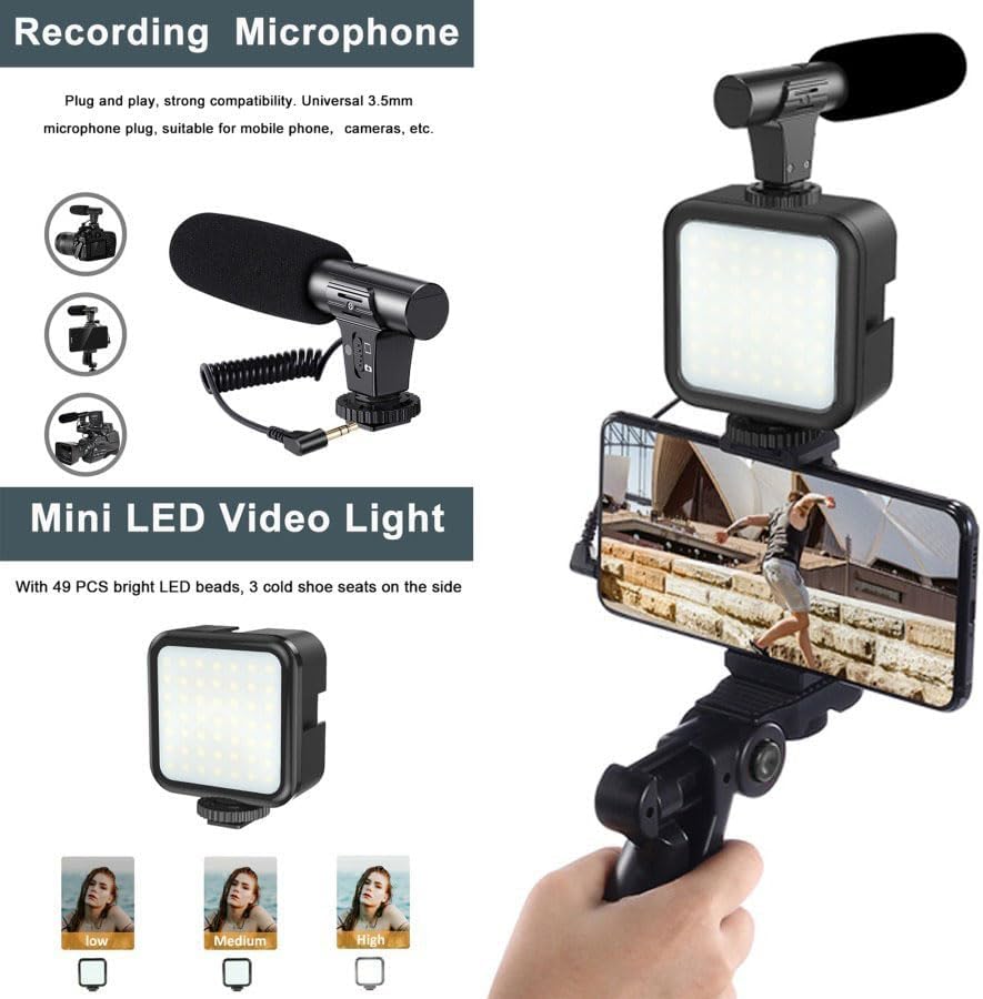 - وضوح صوت فائق: يقلل الميكروفون الاتجاهي المتضمن من ضوضاء الخلفية، مما يضمن سماع صوتك بصوت عالٍ وواضح.</li> <li>أوضاع إضاءة متعددة الاستخدامات: حلقة إضاءة ليد قابلة للتعديل مع مستويات سطوع متعددة ودرجات حرارة ألوان لتناسب أي إعداد أو وقت من اليوم.</li> <li>حامل ثلاثي القوائم مرن: متين وقابل للتكيف، مما يوفر الثبات والتنوع في كل لقطة.