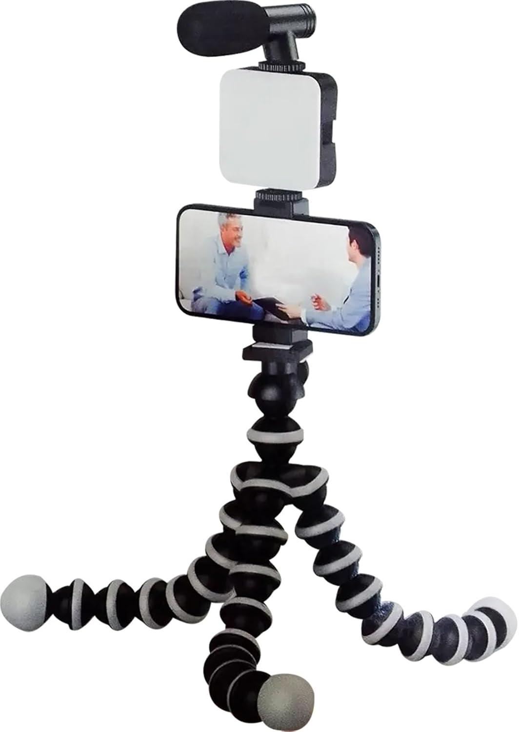 - وضوح صوت فائق: الميكروفون الاتجاهي المضمن يقلل من ضوضاء الخلفية، مما يضمن وضوح صوتك وقوته.</li> <li>أوضاع إضاءة متعددة الاستخدامات: حلقة إضاءة ليد قابلة للتعديل مع مستويات سطوع متعددة ودرجات حرارة ألوان لتناسب أي إعداد أو وقت من اليوم.</li> <li>حامل ثلاثي القوائم مرن: متين وقابل للتكيف، مما يوفر الثبات والتنوع في كل لقطة.