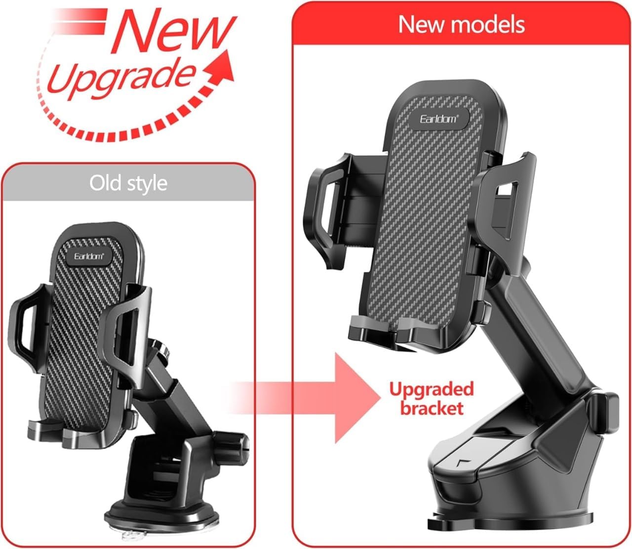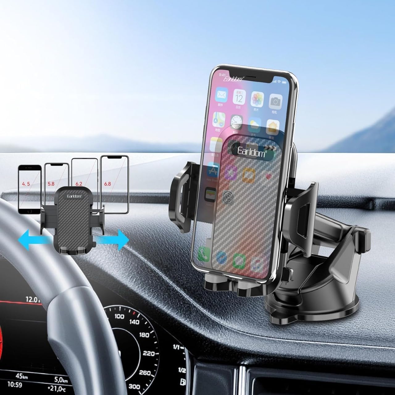 - ايرلدوم، النوع: حامل جهاز إلكتروني محمول، متوافق مع: متعددة، موديل الأجهزة المتوافقة: متعددة، اللون: أسود، المادة: بلاستيك، قابل للتعديل، حامل، قطعة واحدة، نوع التركيب: لوحة القيادة، الأجهزة المتوافقة: الهواتف الذكية،