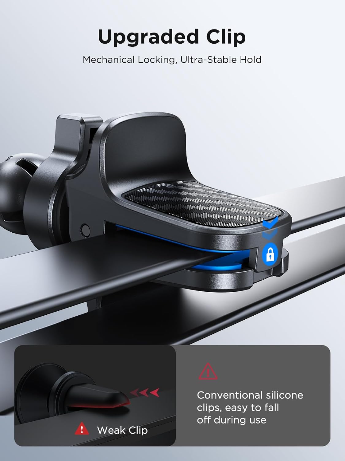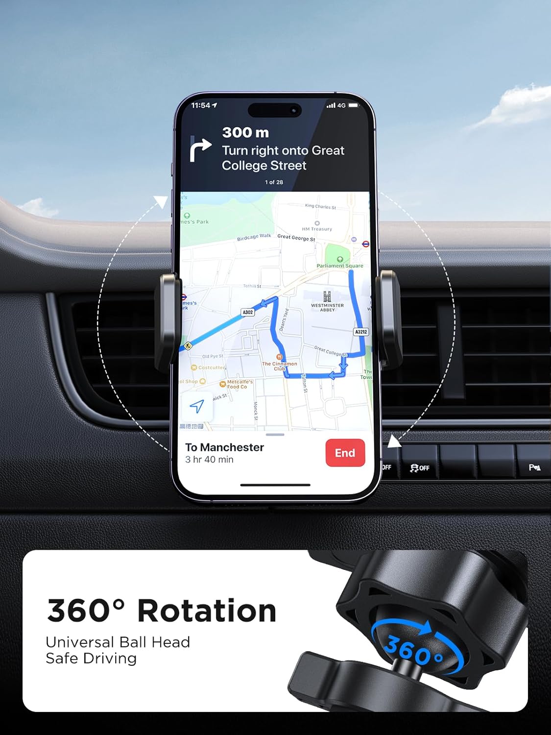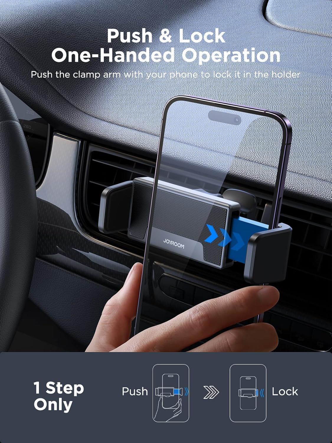 - يمكنك وضع هاتفك أو إزالته من الحامل بحركة واحدة
