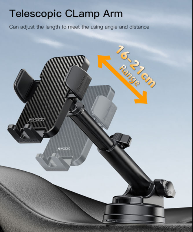 Yesido C173 حامل هاتف من ألياف الكربون المسطح مع حامل سيليكون مجوف للوحة القيادة - أسود
