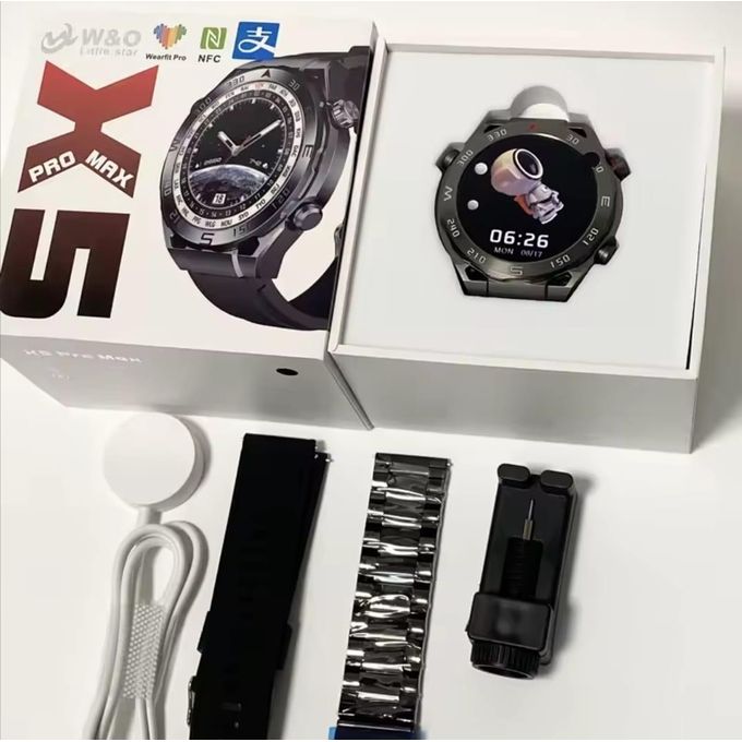 ساعة W&O الذكية NFC X5 Pro Max هي جهاز متكامل مصمم لتلبية احتياجات المستخدمين النشطين. هذه الساعة تأتي بشاشة لمس كاملة بحجم 1.39 بوصة ودقة 360 × 360 بكسل، مما يوفر تجربة بصرية مدهشة. مع بطارية قوية بسعة 250 مللي أمبير، يمكنك الاستمتاع باستخدام الساعة لفترات طويلة دون الحاجة للشحن المتكرر.