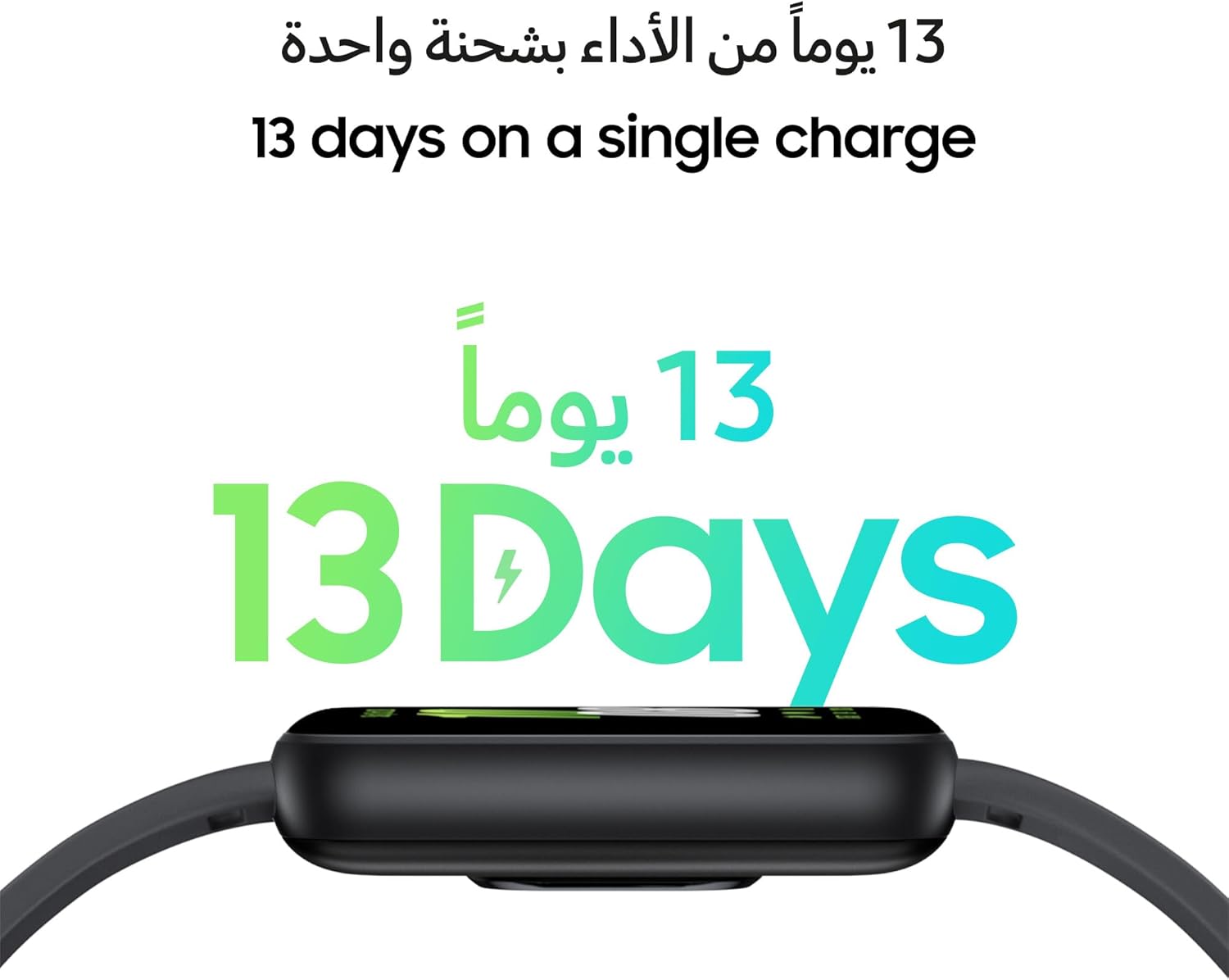 - اشحن بطارية جهازك لمدة تصل إلى ١٣ يومًا بشحنة واحدة، أو اشحنها بسرعة حتى ٦٥٪ في ٣٠ دقيقة فقط. لا تقلق بشأن عمر البطارية، وركّز أكثر على لياقتك البدنية اليومية.