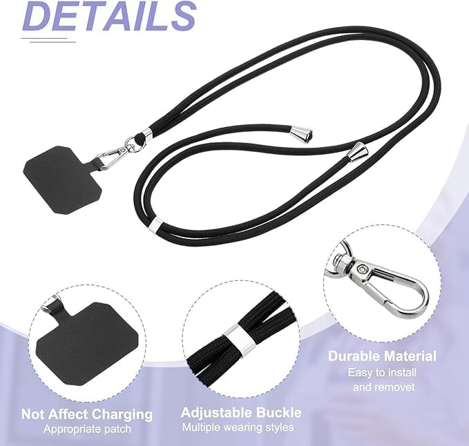 “طول قابل للتعديل: طول حبل الهاتف المحمول: قابل للتعديل بين حوالي 160 سم ويمكن وضعه حول الرقبة أو حزام الكتف. يمكنك ضبط طول الحبل وفقًا لطولك عن طريق سحب شريطين. راحة متينة: سلسلة الهاتف مصنوعة من البوليستر عالي الجودة المقاوم للتمزق. إغلاق معدني قوي وملحقات أمان تمنع هاتفك من السقوط عن طريق الخطأ. مادة حبل الكتف والرقبة مناسبة للبشرة، لذلك لن تشد الرقبة أو الكتفين. حرر يديك واحم هاتفك المحمول: حافظ على يديك حرتين عندما تكون مشغولاً وخذ هاتفك الذكي معك بأمان. حافظ على هاتفك آمنًا ويمكن الوصول إليه ضمن رؤيتك لمنع السرقة. سهل التركيب: حامل الهاتف الخلوي للرقبة سهل الاستخدام. ببساطة أدخل السدادة في حافظة الهاتف، ويمكنك تفكيكها أو إعادة تجميعها بسرعة. لذلك يمكنك استخدام هاتفك في أي وقت وفي أي مكان. إنها قلادة مثالية للهاتف المحمول للجميع في الحياة اليومية.”