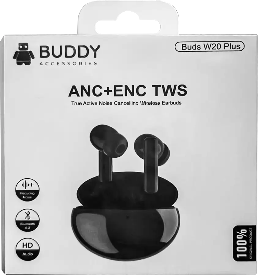 سماعات أذن بادي لاسلكية، بلوتوث 5.3، مقاومة للماء، ENC، أسود، W20 Plus .