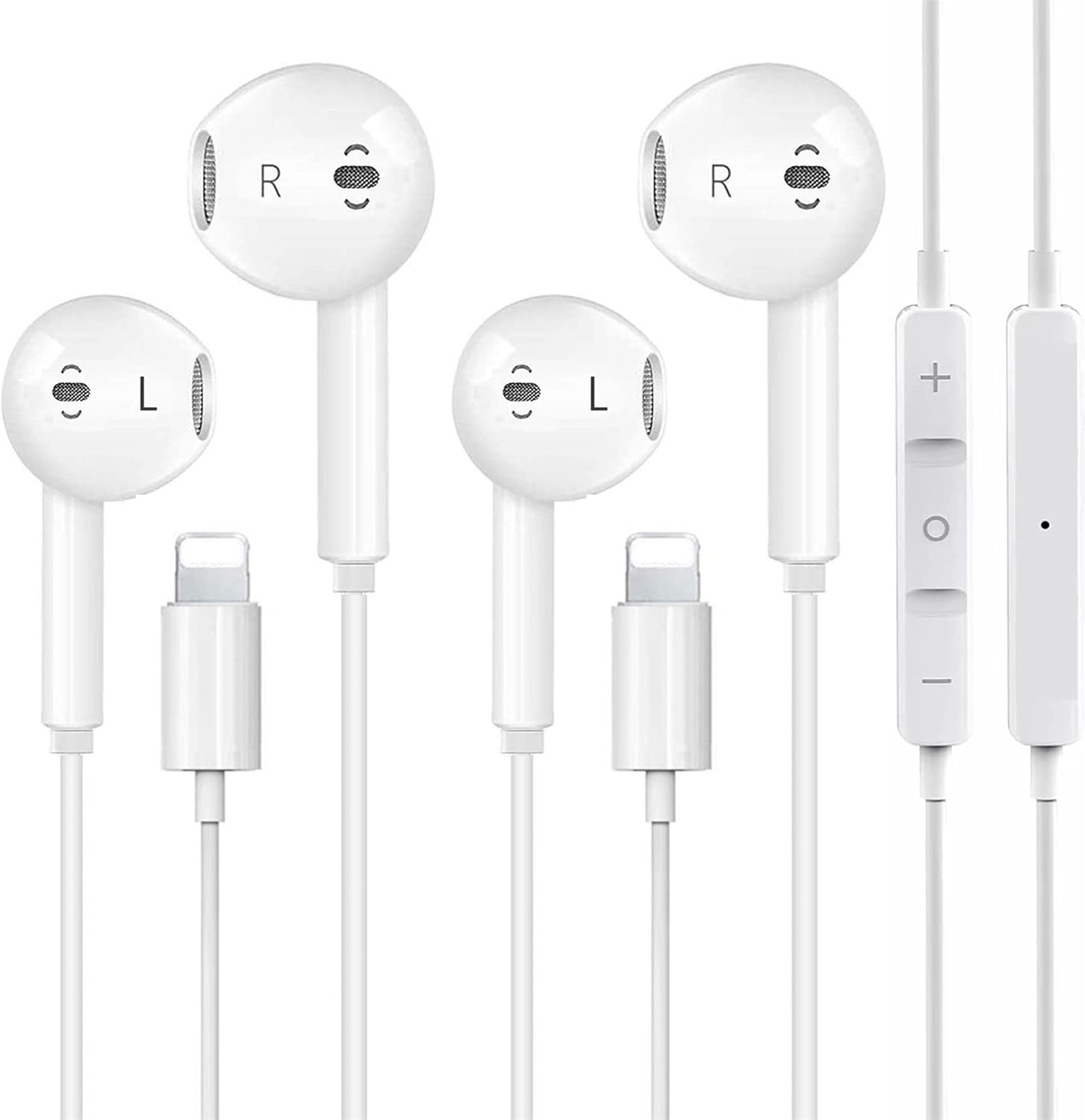 سماعات اذن ابل بسلك لايتنينج وميكروفون مدمج وتحكم في مستوى الصوت [معتمدة من ابل] متوافقة مع ايفون 13 – 12 – 11 – XR – XS – X – 7 – بلس – 8 – تدعم جميع انظمة iOS قطعتين الاذن أبيض
