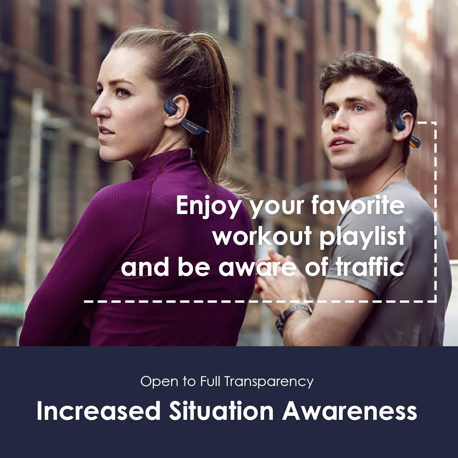 - الشفافية الكاملة تجعل أكثر أمانًا – ابق محفزًا وعلى دراية خلال أي تمرين مع تقنية الشفافية الكاملة خاصتنا. توفر سماعات اوبن سيركلت صوتًا عالي الجودة مع ترك طبلة الأذن مفتوحة على البيئة المحيطة لتوفير أقصى درجات الأمان.
