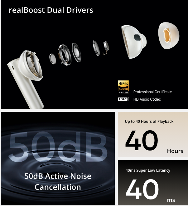 - شحن سلكي من النوع C حتى الشحن الكامل (مع علبة الشحن وسماعات الأذن):