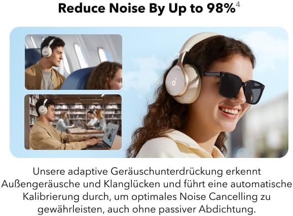 - تقلل الضوضاء بنسبة تصل إلى 98%*: تكتشف خاصية إلغاء الضوضاء التكيفية الأصوات الخارجية وتسرب الصوت، وتعمل على المعايرة التلقائية لتوفير الحد الأمثل من الضوضاء. تخلص من التشتيت غير المرغوب فيه، سواء كنت في قطار صاخب أو في مقهى صاخب أو لا تضع سماعات الرأس على أذنيك بشكل صحيح. *تم اختبارها من قِبل ساوند كور في ظروف المختبر.