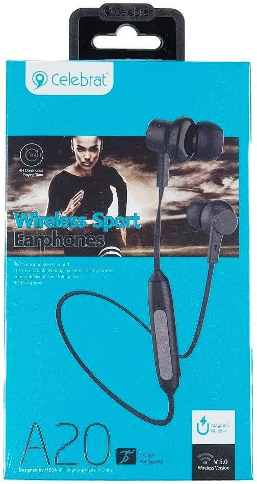 سماعة أذن رياضية سيليبريت A20 بتصميم داخل الأذن تعمل بتقنية البلوتوث ومتوافقة مع جميع الموبايلات لاسلكي .