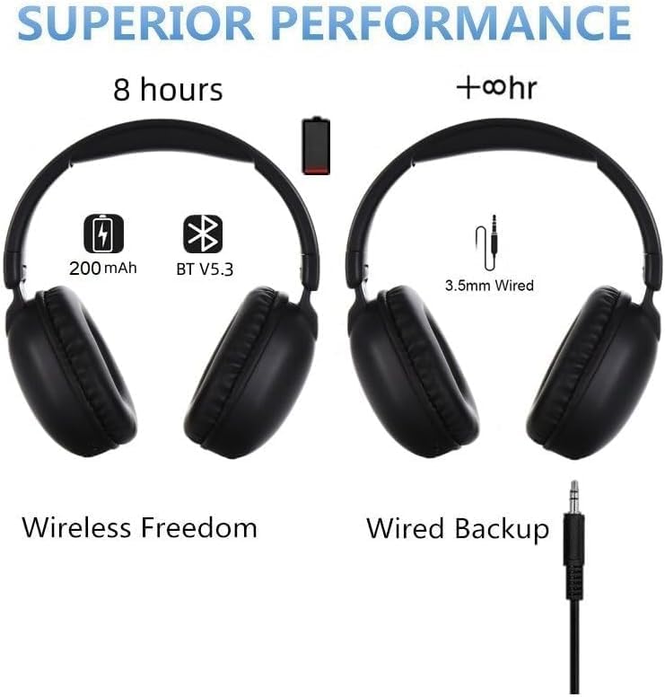 سماعة رأس لاسلكية – SD1101- ، بلوتوث V5.3 مع ميكروفون خارجي .سماعات ستيريو عالية الدقة هاي فاي و تدعم بطاقة SD، فوق الأذن، اسو- لون (اسود)