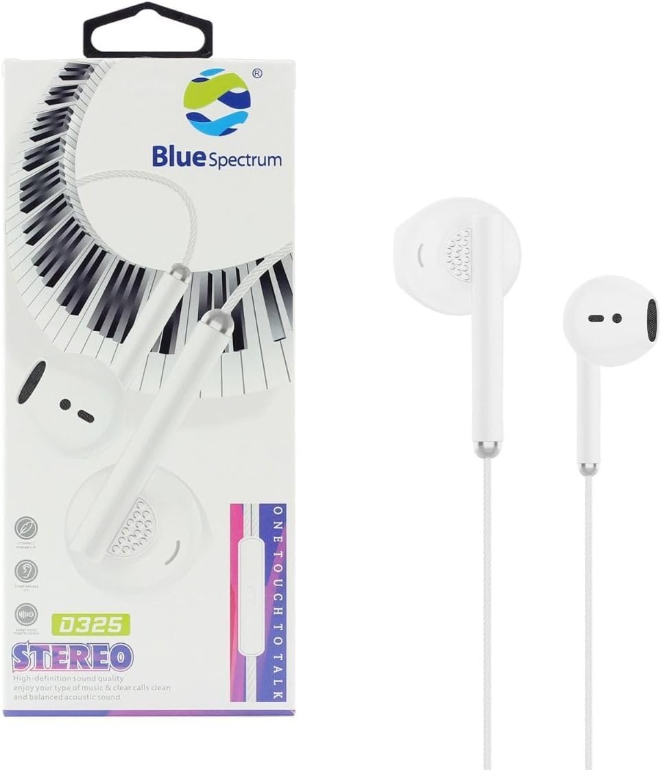 سماعة راس ستيريو مع ميكروفون من بلو سبيكتروم متوافقة مع جميع الموبايلات موديل D-325 (ابيض)، سلكي، داخل الأذن