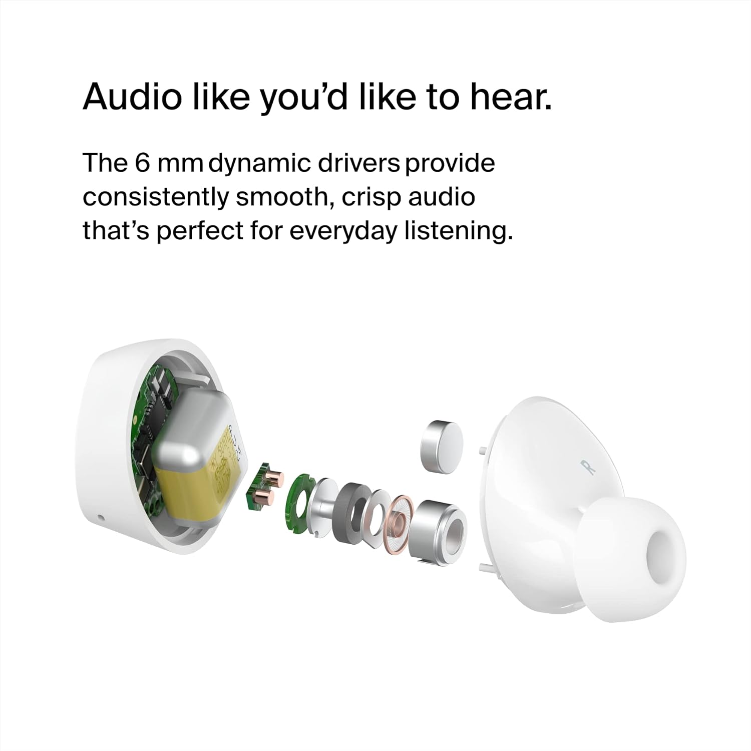 - جودة صوت واضحة وسلسة من مشغلات ديناميكية 6 ملم تمكنك من سماع الموسيقى والمكالمات بوضوح.