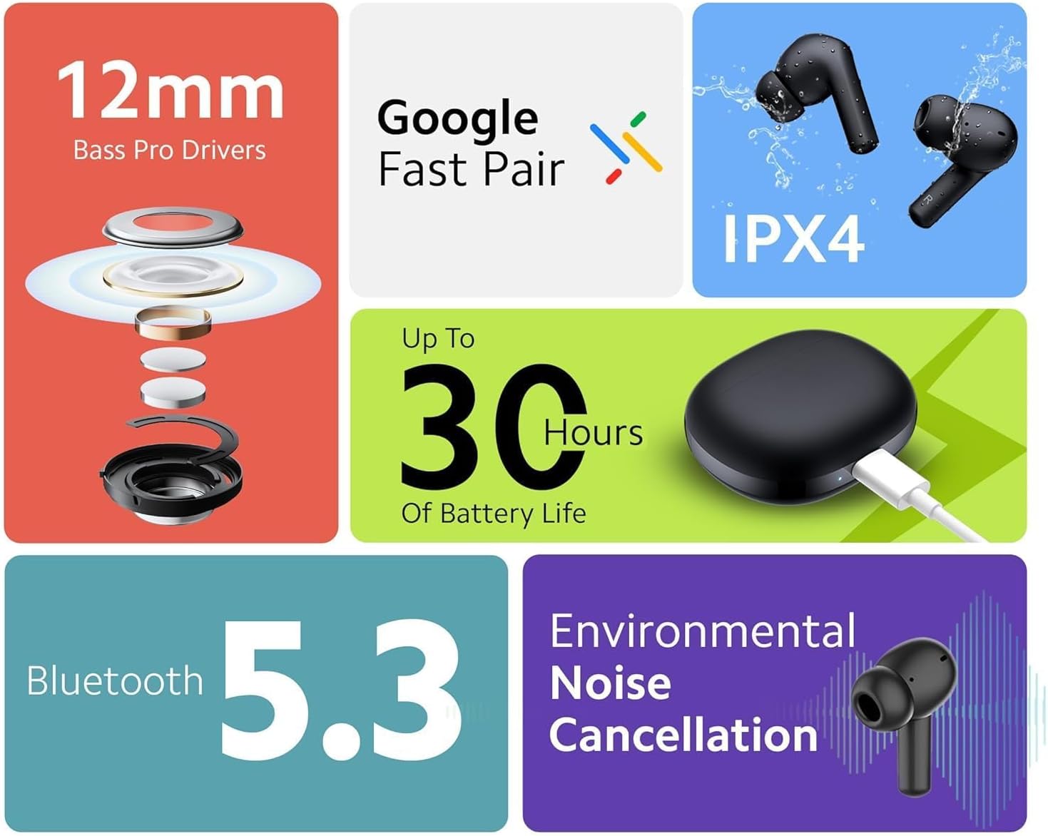 - بلوتوث 5.3 – مطور بالكامل: تم تجهيز سماعات الأذن الآن بأحدث تقنية بلوتوث 5.3، مما يسمح بتقليل استهلاك الطاقة واستقرار أكبر للإشارة ومقاومة أقوى للتداخل. حتى عندما تكون محاطة بأجهزة متعددة، فإنه لا يزال يوفر نقلًا موثوقًا به دون أي تدخل.